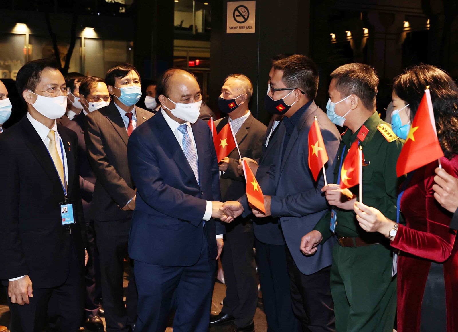 Cán bộ Đại sứ quán tại Mỹ và Phái đoàn Thường trực Việt Nam tại Liên hợp quốc đón Ủy viên Bộ Chính trị, Chủ tịch nước Nguyễn Xuân Phúc đến thành phố New York (Mỹ), bắt đầu chương trình tham dự Phiên thảo luận chung cấp cao Đại hội đồng Liên hợp quốc khóa 76 và thực hiện một số hoạt động song phương bên lề phiên họp_Ảnh: TTXVN