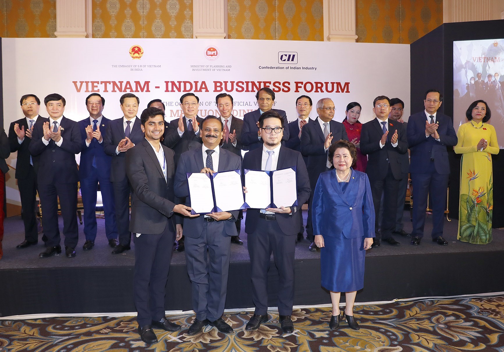 Về quan hệ thương mại, Ấn Độ hiện là một trong 10 đối tác thương mại lớn nhất của Việt Nam. Trao đổi thương mại giữa hai nước đã tăng vọt hơn 60 lần, từ 200 triệu USD (năm 2000) lên 12,3 tỷ USD (năm 2019). Mặc dù chịu ảnh hưởng của dịch bệnh COVID-19 từ năm 2020 đến nay, tỷ trọng kim ngạch thương mại năm 2021 giữa hai nước vẫn đạt gần 11 tỷ USD. Hai bên đặt mục tiêu nâng tỷ trọng kim ngạch thương mại lên 15 tỷ USD trong những năm tới. Về đầu tư, Ấn Độ hiện có hơn 300 dự án đầu tư tại Việt Nam với tổng số vốn đăng ký khoảng 1 tỷ USD, đứng thứ 26 trong tổng số 141 các quốc gia và vùng lãnh thổ đầu tư tại Việt Nam. Hiện các dự án của Ấn Độ tập trung nhiều nhất vào lĩnh vực công nghiệp chế biến, chế tạo với 60 dự án, tổng vốn đầu tư đạt 459,67 triệu USD, chiếm 50,5% về vốn đầu tư.