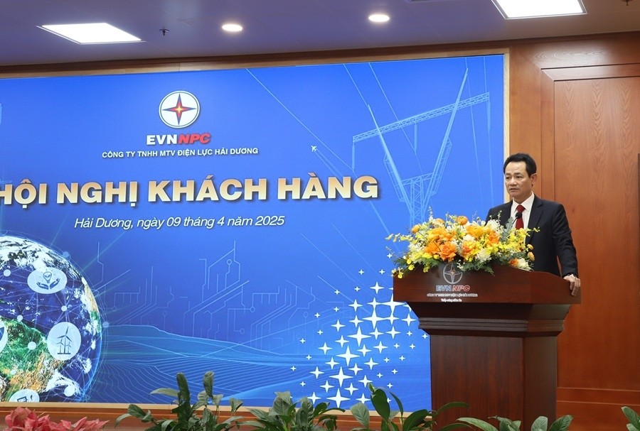 Tại Hội nghị khách hàng của Công ty TNHH MTV Điện lực Hải Dương, Thành viên HĐTV, Tổng Giám đốc EVNNPC Nguyễn Đức Thiện chia sẻ: “Tổng công ty Điện lực miền Bắc đang cung cấp điện cho hơn 11 triệu khách hàng, ảnh hưởng tới khoảng 40% dân số cả nước. Sản lượng điện thương phẩm năm 2024 đạt gần 100 tỷ kWh, chiếm 35,8% sản lượng điện thương phẩm toàn EVN và là đơn vị dẫn đầu về sản lượng điện thương phẩm trong 5 tổng công ty phân phối trực thuộc EVN. Trong giai đoạn 2021 - 2025, Tổng công ty đã và đang thực hiện các dự án đầu tư với tổng nguồn vốn lên tới hàng trăm nghìn tỷ đồng cho lưới điện 220kV, 110kV và lưới điện trung, hạ áp tại các địa phương, đặc biệt chú trọng các công trình cấp bách, trọng điểm tại các khu, cụm công nghiệp nhằm kịp thời bảo đảm cấp điện, góp phần phát triển kinh tế - xã hội và giữ vững quốc phòng - an ninh”. Đồng chí Nguyễn Đức Thiện cũng đề nghị chính quyền địa phương các cấp chỉ đạo các sở, ngành, tổ chức chính trị - xã hội vận động người dân và doanh nghiệp sử dụng điện tiết kiệm, hiệu quả theo Chỉ thị số 20 của Thủ tướng Chính phủ. Đồng thời, tạo điều kiện thuận lợi cho các tổ chức, cá nhân phát triển nguồn điện mặt trời mái nhà tự sản, tự tiêu; tiếp tục quan tâm, hỗ trợ ngành điện trong quá trình thực hiện các thủ tục liên quan đến đầu tư xây dựng công trình điện, phê duyệt danh sách phụ tải quan trọng và phương án cấp điện hằng năm. Đồng chí Nguyễn Đức Thiện cũng kêu gọi quý khách hàng chủ động xây dựng kế hoạch sản xuất hợp lý, tránh vận hành thiết bị công suất lớn vào giờ cao điểm, thực hiện tốt chương trình tiết kiệm điện, tích cực lắp đặt điện mặt trời mái nhà, đăng ký phụ tải đỉnh trong các tháng cao điểm nắng nóng và cam kết sử dụng không vượt quá công suất tối đa trong giờ cao điểm, nhằm nâng cao chất lượng dự báo phụ tải, phối hợp tốt với điện lực địa phương trong điều chỉnh và dịch chuyển phụ tải.