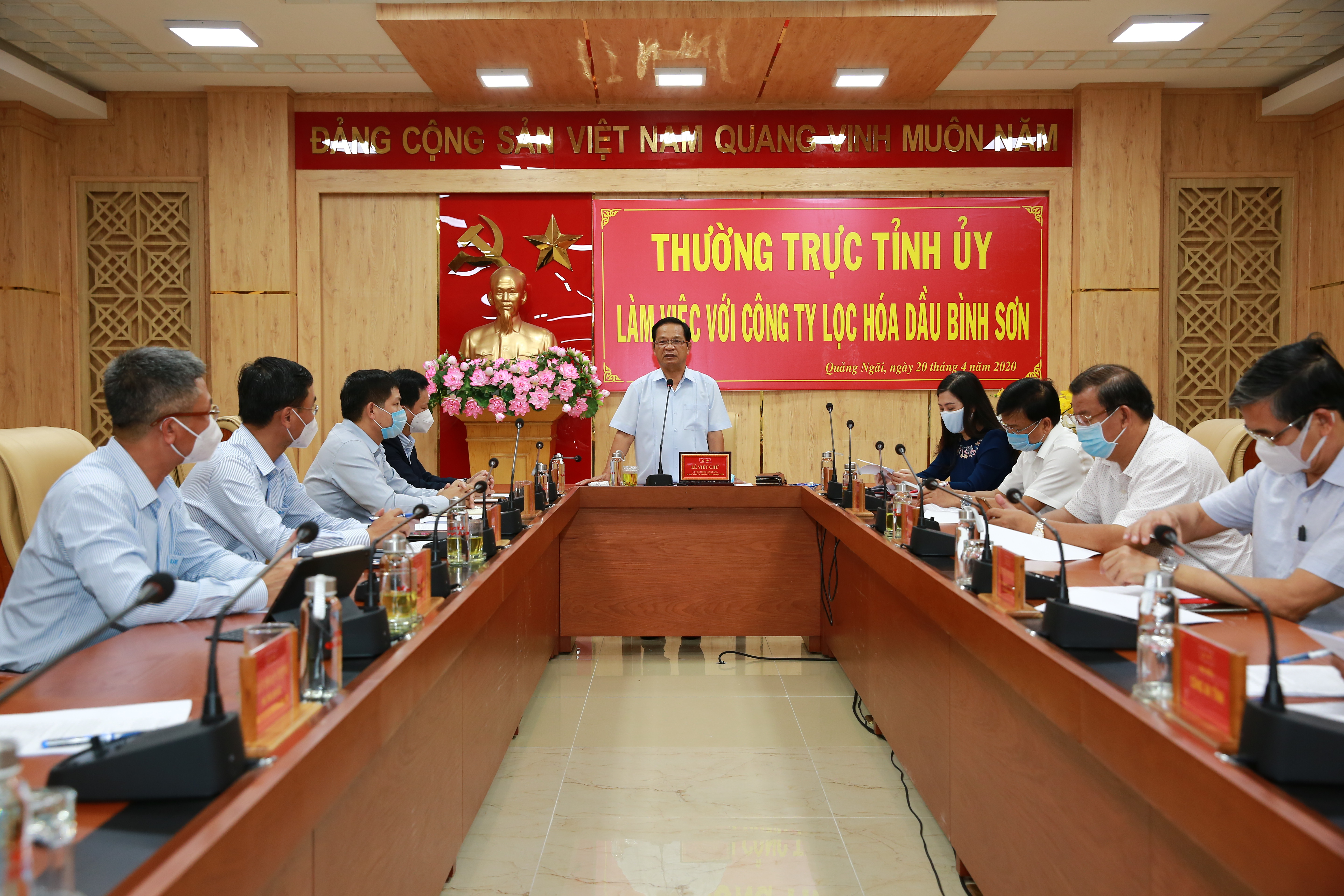 TCCS - Ngày 20-4-2020, Ban Thường vụ Tỉnh ủy Quảng Ngãi đã có buổi làm việc với Công ty cổ phần Lọc hóa dầu Bình Sơn để bàn các biện pháp, kịp thời tháo gỡ những khó khăn của Công ty trong cơn bão kép đại dịch COVID-19 và giá dầu giảm sâu.