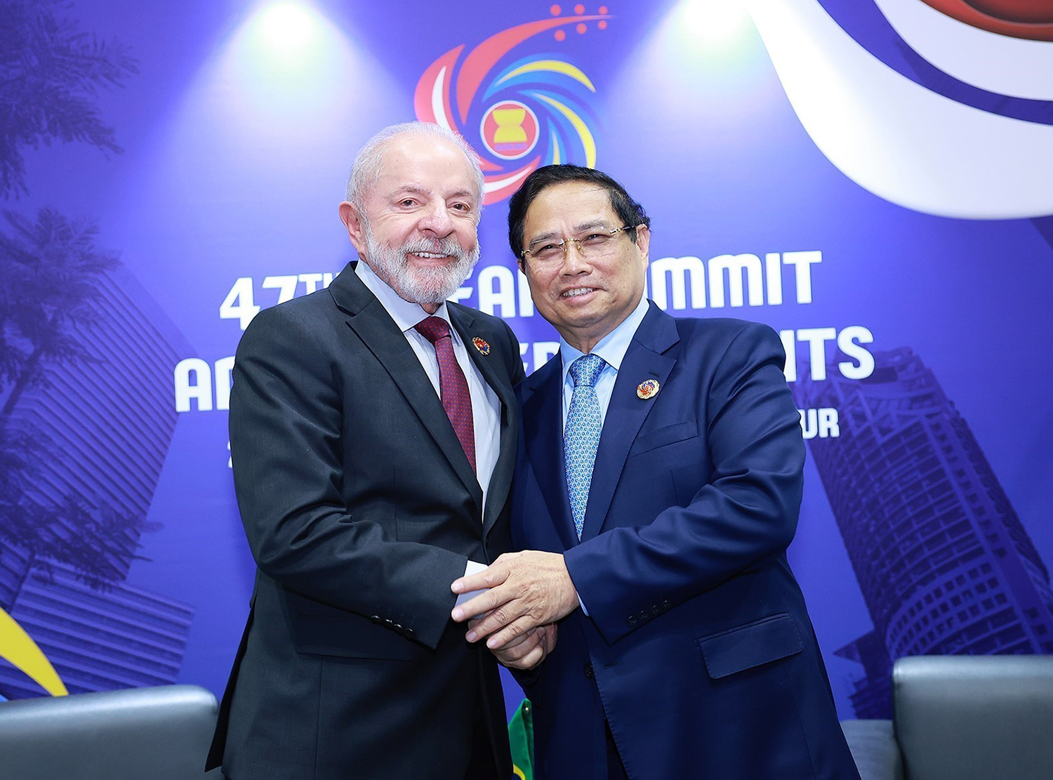 Ủy viên Bộ Chính trị, Thủ tướng Chính phủ Phạm Minh Chính hội kiến Tổng thống Brazil Lula da Silva tại Hội nghị cấp cao ASEAN lần thứ 47 và các Hội nghị cấp cao liên quan diễn ra tại Kuala Lumpur (Malaysia), ngày 26-10-2025_Ảnh: TTXVN