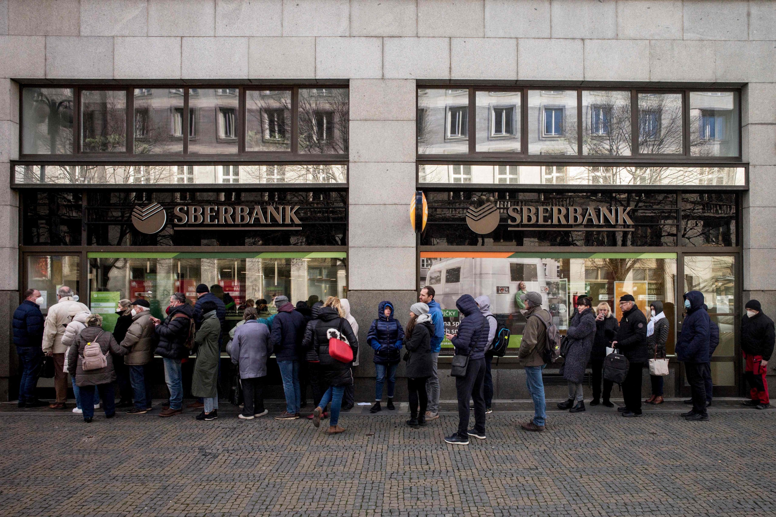Không chỉ vậy, các chi nhánh của Ngân hàng Sberbank lớn nhất của Nga ở châu Âu đang trên bờ vực sụp đổ khi các khoản tiền gửi tiết kiệm của khách hàng bị rút dồn dập. Cổ phiếu của Sberbank (SBRCY) niêm yết tại London (Anh) giảm gần 99,9%. Cổ phiếu của Tập đoàn năng lượng Gazprom (GZPFY) giảm 37% trong giao dịch tại London (Anh). Cổ phiếu của nhà cung cấp dịch vụ internet Yandex (YNDX) đã bị đình chỉ giao dịch trên Nasdaq, cùng với 7 công ty khác của Nga được niêm yết tại New York (Mỹ).