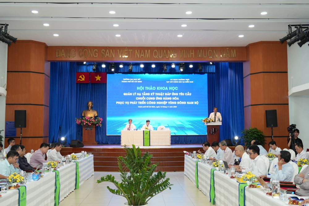 TCCS - Ngày 12-11-2024, tại Trường Đại Mở Thành phố Hồ Chí Minh, Cơ quan Thường trực Tạp chí Cộng sản tại miền Nam và Trường Đại học Mở Thành phố Hồ Chí Minh long trọng tổ chức Hội thảo “Quản lý hạ tầng kỹ thuật đáp ứng yêu cầu chuỗi cung ứng hàng hóa phục vụ phát triển công nghiệp vùng Đông Nam Bộ”.