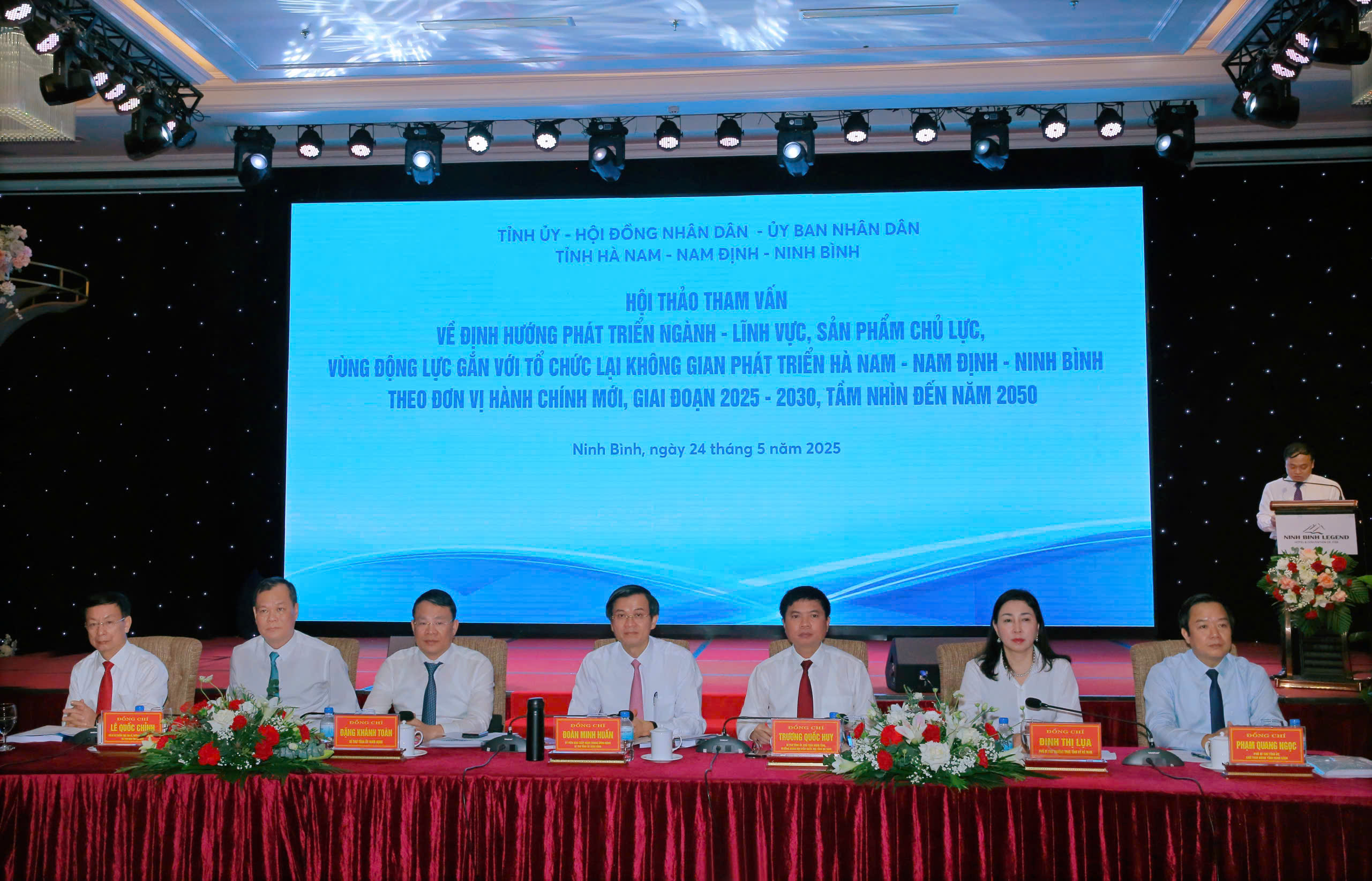 TCCS - Ngày 24-5-2025, tại tỉnh Ninh Bình, Tỉnh ủy, hội đồng nhân dân, ủy ban nhân dân 3 tỉnh Hà Nam, Nam Định, Ninh Bình phối hợp tổ chức Hội thảo tham vấn "Về định hướng phát triển ngành gắn với không gian phát triển tỉnh Hà Nam - Nam Định - Ninh Bình theo đơn vị hành chính mới, giai đoạn 2025 - 2030, tầm nhìn đến năm 2050".