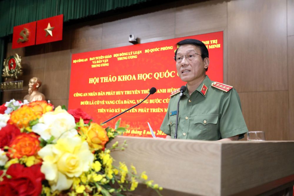 TCCS - Nhân kỷ niệm 80 năm Ngày truyền thống Công an nhân dân (19-8-1945 - 19-8-2025) và 20 năm Ngày hội Toàn dân bảo vệ an ninh Tổ quốc (19-8-2005 - 19-8-2025), ngày 4-8-2025, tại Hà Nội, Bộ Công an chủ trì phối hợp với Ban Tuyên giáo và Dân vận Trung ương, Hội đồng Lý luận Trung ương, Bộ Quốc phòng và Học viện Chính trị quốc gia Hồ Chí Minh tổ chức Hội thảo khoa học cấp quốc gia với chủ đề: “Công an nhân dân phát huy truyền thống anh hùng cách mạng, dưới lá cờ vẻ vang của Đảng vững bước cùng đất nước tiến vào kỷ nguyên phát triển mới”. Tổng Bí thư Tô Lâm gửi thư chúc mừng hội thảo.