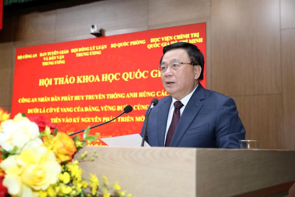 Phát biểu khai mạc hội thảo, đồng chí Lương Tam Quang nhấn mạnh, 80 năm đồng hành cùng đất nước, trong bất kỳ điều kiện, hoàn cảnh nào, nhất là ở những tình thế ngặt nghèo, khó khăn của cách mạng, lực lượng Công an nhân dân Việt Nam luôn tỏ rõ lòng trung thành tuyệt đối với Đảng, với Tổ quốc và nhân dân, luôn “chỉ biết còn Đảng thì còn mình”; kiên định, vững vàng, nêu cao tinh thần cách mạng tiến công, không quản ngại khó khăn, gian khổ, đề cao tinh thần cảnh giác, tận tụy với công việc, sẵn sàng xả thân vì nước, lấy lợi ích của Tổ quốc và nhân dân làm ý tưởng, đem hết sức lực, tài trí và cả tính mạng của mình để bảo vệ Đảng, Nhà nước, chế độ xã hội chủ nghĩa, bảo vệ cuộc sống bình yên, hạnh phúc của nhân dân. Lòng trung thành, sự hy sinh và những cống hiến to lớn của lực lượng công an nhân dân trong sự nghiệp cách mạng của dân tộc được kết tinh bởi sự tận trung với nước, tận hiếu với dân, bản chất cách mạng trong sáng và đức tính hy sinh quả cảm của lớp lớp cán bộ, chiến sĩ công an nhân dân trong cuộc chiến đấu đầy cam go, thử thách vì an ninh Tổ quốc, góp phần quan trọng vào sự nghiệp giải phóng dân tộc, xây dựng và bảo vệ Tổ quốc xã hội chủ nghĩa, xứng đáng với niềm tin yêu của Đảng, Nhà nước và nhân dân.