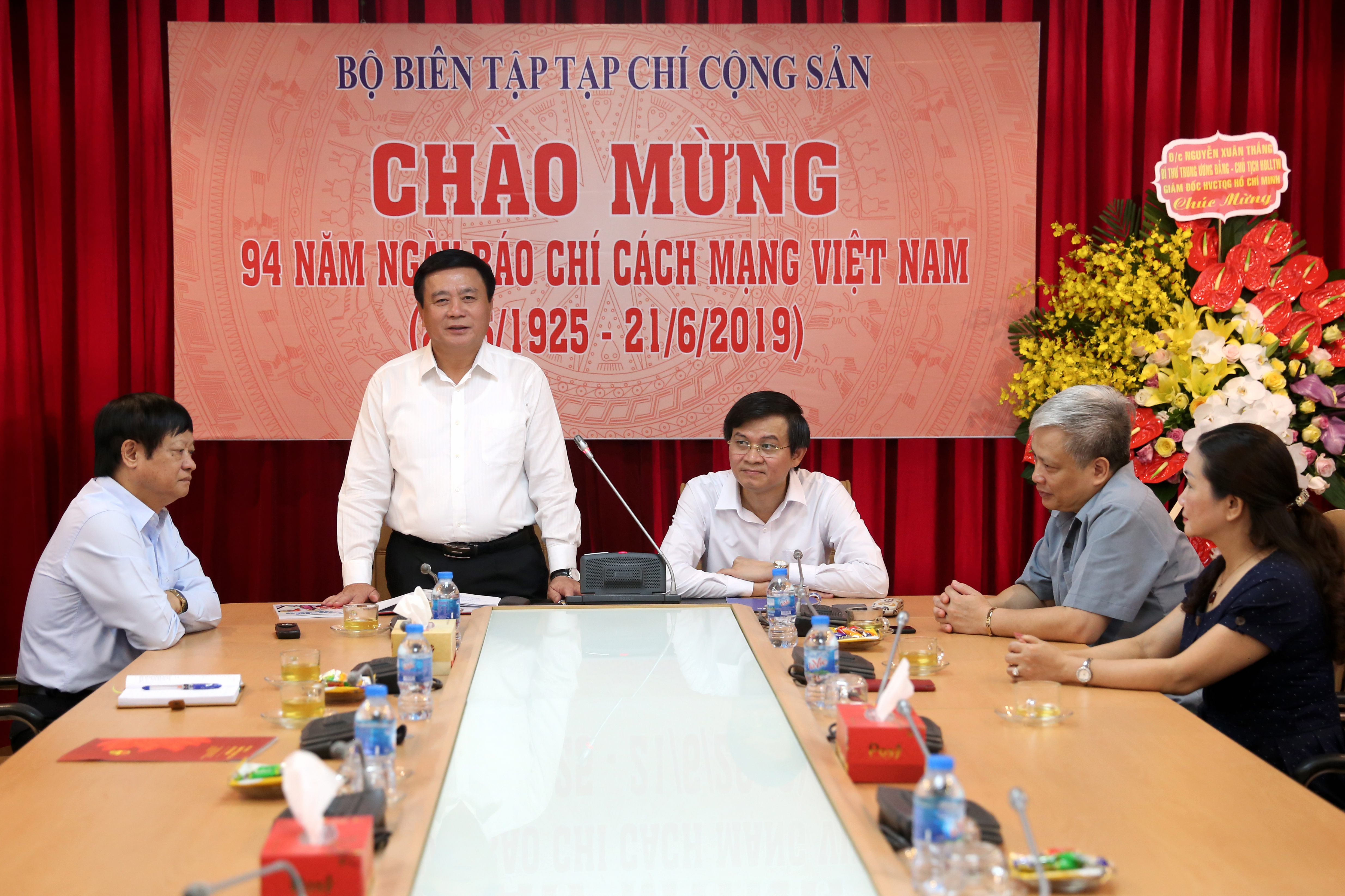 TCCSĐT - Nhân kỷ niệm 94 năm Ngày Báo chí Cách mạng Việt Nam, ngày 18-6-2019, tại trụ sở Tạp chí Cộng sản, GS, TS. Nguyễn Xuân Thắng, Bí thư Trung ương Đảng, Giám đốc Học viện Chính trị quốc gia Hồ Chí Minh, Chủ tịch Hội đồng Lý luận Trung ương đã đến thăm và chúc mừng cán bộ, nhân viên Tạp chí Cộng sản.