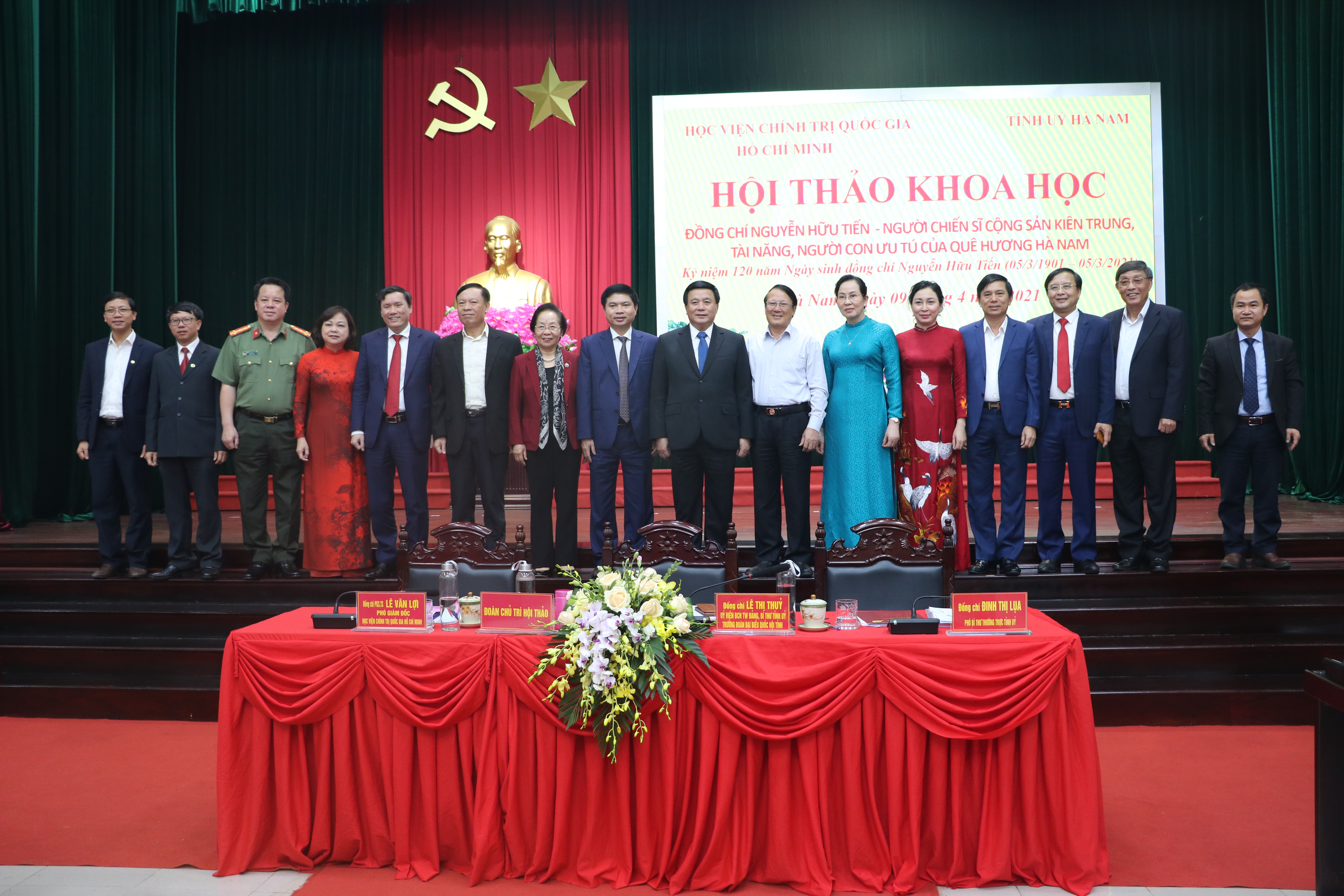 Dự hội thảo có đồng chí Nguyễn Xuân Thắng, Ủy viên Bộ Chính trị, Giám đốc Học viện Chính trị quốc gia Hồ Chí Minh, Chủ tịch Hội đồng Lý luận Trung ương; đồng chí Nguyễn Thị Doan, nguyên Ủy viên Trung ương Đảng, nguyên Phó Chủ tịch nước, Chủ tịch Hội Khuyến học Việt Nam; đại diện lãnh đạo một số ban, bộ, ngành trung ương; đại diện lãnh đạo Tỉnh uỷ Nam Định; Thành ủy Thành phố Hồ Chí Minh; Tỉnh ủy An Giang; các nhà khoa học; các đồng chí lãnh đạo, nguyên lãnh đạo tỉnh Hà Nam; đại biểu đại diện quê hương và gia đình, dòng họ đồng chí Nguyễn Hữu Tiến.