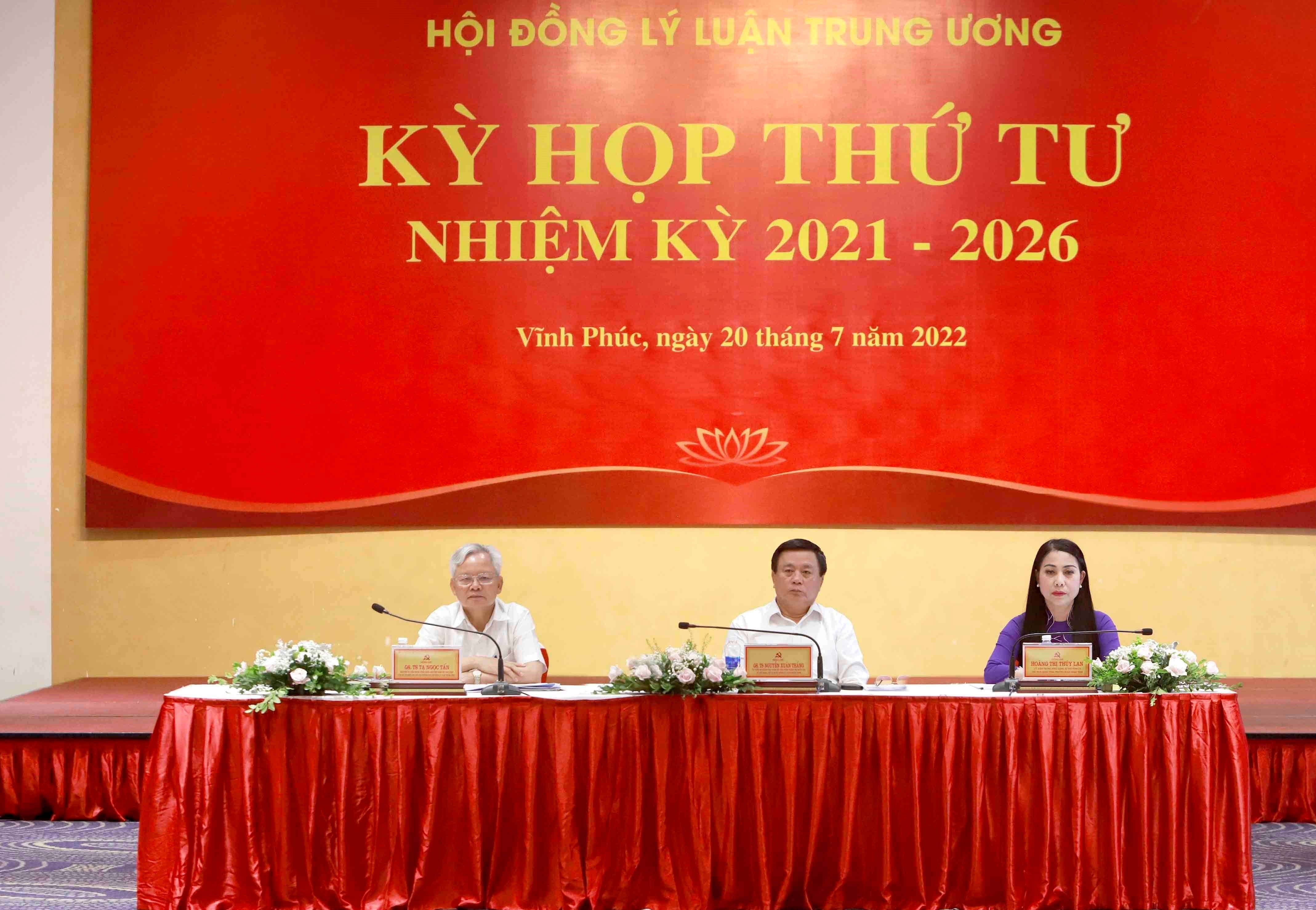 Các đồng chí: GS, TS. Nguyễn Xuân Thắng, Ủy viên Bộ Chính trị, Giám đốc Học viện Chính trị quốc gia Hồ Chí Minh, Chủ tịch Hội đồng Lý luận Trung ương; Hoàng Thị Thúy Lan, Ủy viên Trung ương Đảng, Bí thư Tỉnh ủy, Chủ tịch Hội đồng nhân dân tỉnh, Trưởng Đoàn Đại biểu Quốc hội tỉnh Vĩnh Phúc; GS, TS. Tạ Ngọc Tấn, nguyên Ủy viên Trung ương Đảng, Phó Chủ tịch thường trực Hội đồng Lý luận Trung ương chủ trì kỳ họp.