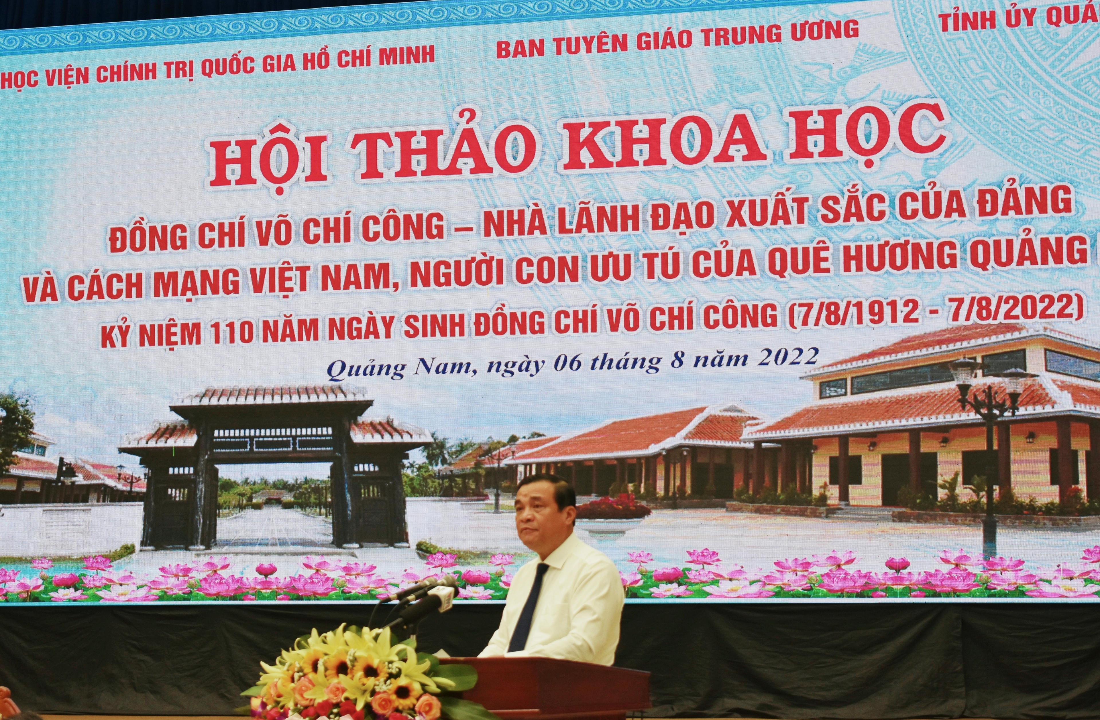 “Hội thảo là việc làm có ý nghĩa thiết thực để chúng ta thành kính tưởng nhớ, tri ân, làm rõ thêm về con người và những cống hiến của đồng chí Võ Chí Công đối với sự nghiệp cách mạng của Đảng, với dân tộc và quê hương Quảng Nam. Bổ sung tư liệu về cuộc đời của đồng chí; góp phần thực hiện Chỉ thị số 05-CT/TW và Kết luận số 01-KL/TW của Bộ Chính trị về tiếp tục đẩy mạnh học tập và làm theo tư tưởng, đạo đức, phong cách Hồ Chí Minh. Đồng thời, bồi dưỡng, giáo dục lý tưởng và truyền thống cách mạng cho cán bộ, đảng viên và các tầng lớp nhân dân, đặc biệt là thế hệ trẻ trong công cuộc xây dựng, phát triển đất nước và bảo vệ Tổ quốc giai đoạn hiện nay”.
