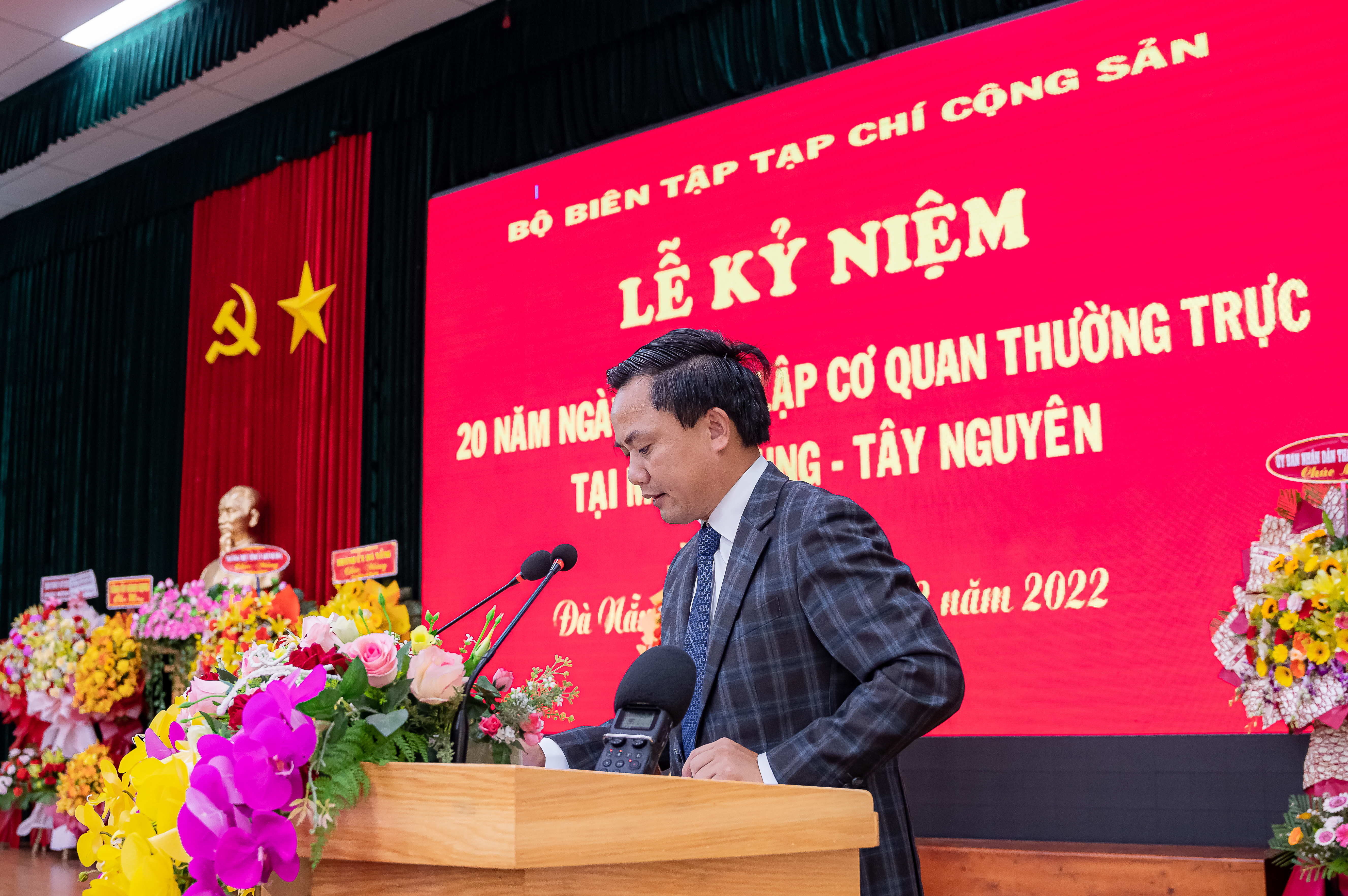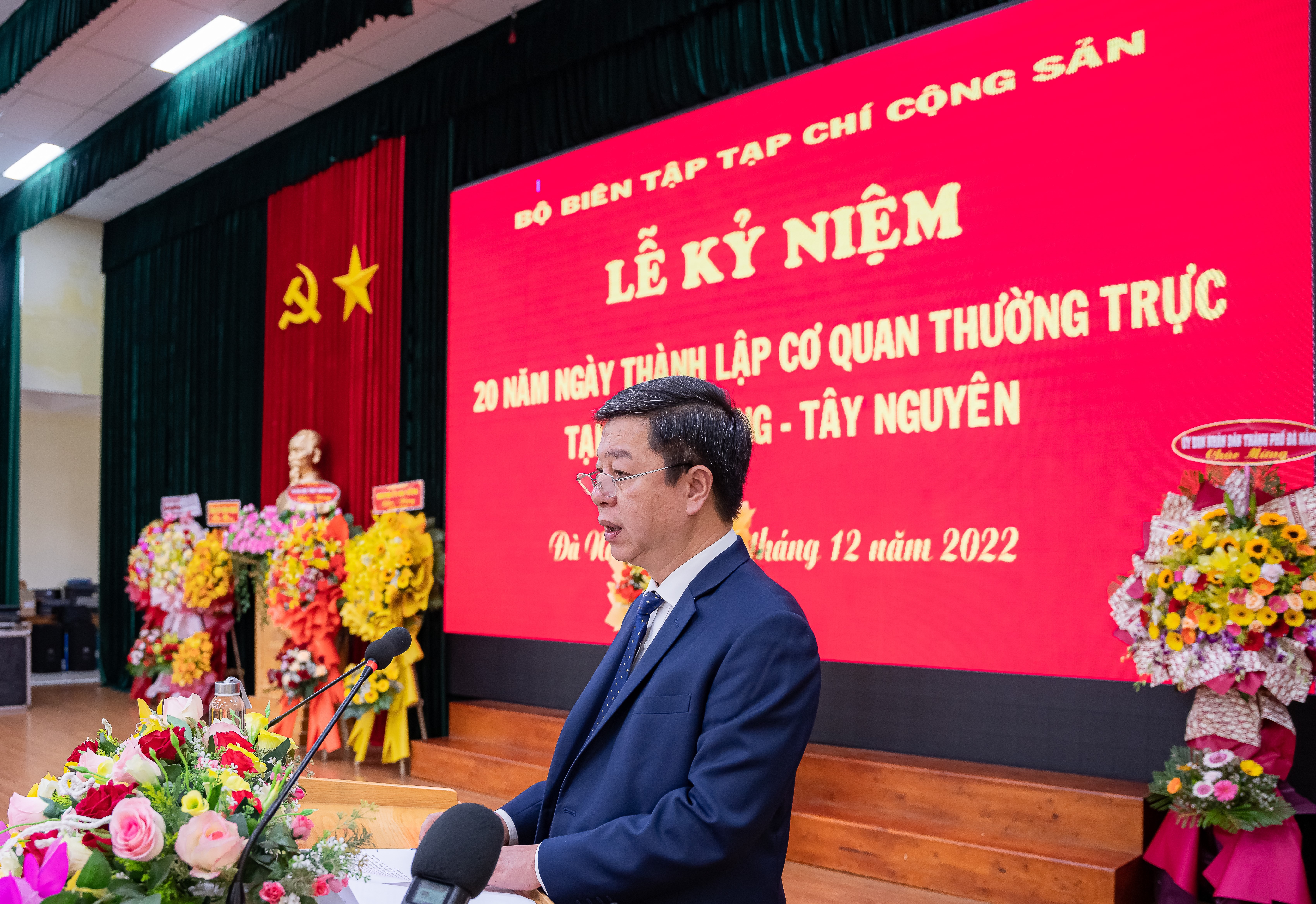Phát biểu tại Lễ kỷ niệm, PGS, TS. Vũ Trọng Lâm, Phó Tổng Biên tập Tạp chí Cộng sản cho biết, Cơ quan thường trực tại miền Trung - Tây Nguyên của Tạp chí Cộng sản thành lập cách đây 20 năm, tiền thân là Ban Thường trú miền Trung và Tây Nguyên, được thành lập theo Quyết định số 249-QĐ/TCCS, ngày 20-12-2002, của Ban Biên tập Tạp chí Cộng sản. Đến ngày 27-11-2007, Bộ Chính trị ban hành Quyết định số 108-QĐ/TW về chức năng, nhiệm vụ, tổ chức bộ máy của Tạp chí Cộng sản. Theo đó, Ban Thường trú miền Trung và Tây Nguyên được đổi tên thành Cơ quan thường trực tại miền Trung - Tây Nguyên cho đến ngày nay.