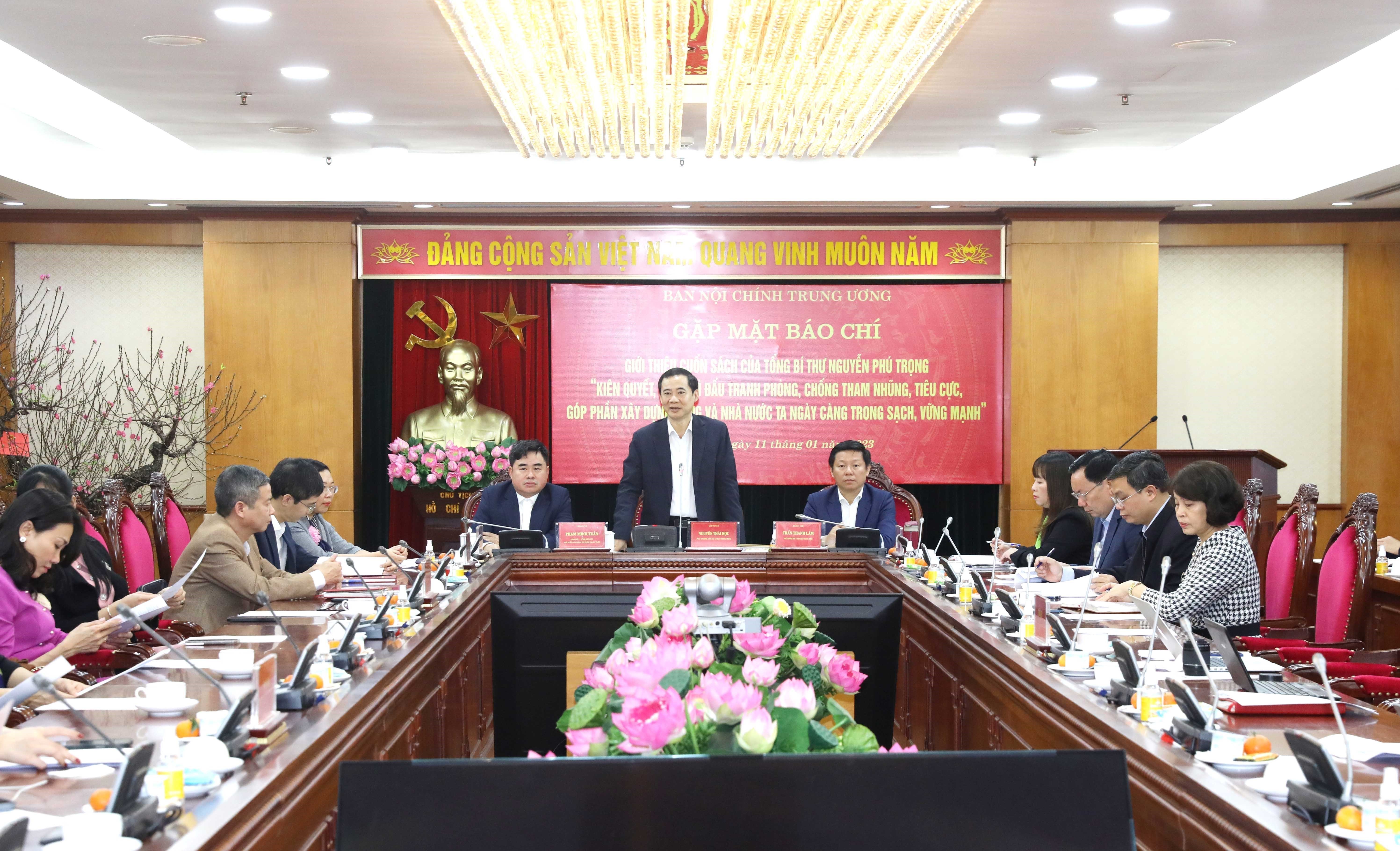 Chủ trì Họp báo gồm có: đồng chí Nguyễn Thái Học, Phó Trưởng Ban Nội chính Trung ương; đồng chí Trần Thanh Lâm, Phó Trưởng Ban Tuyên giáo Trung ương; đồng chí Phạm Minh Tuấn, Giám đốc - Tổng Biên tập Nhà xuất bản Chính trị quốc gia Sự thật. Các cơ quan thông tấn, báo chí tham dự buổi họp báo.