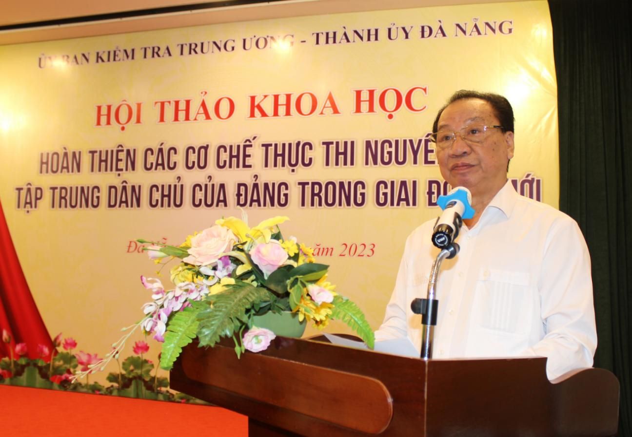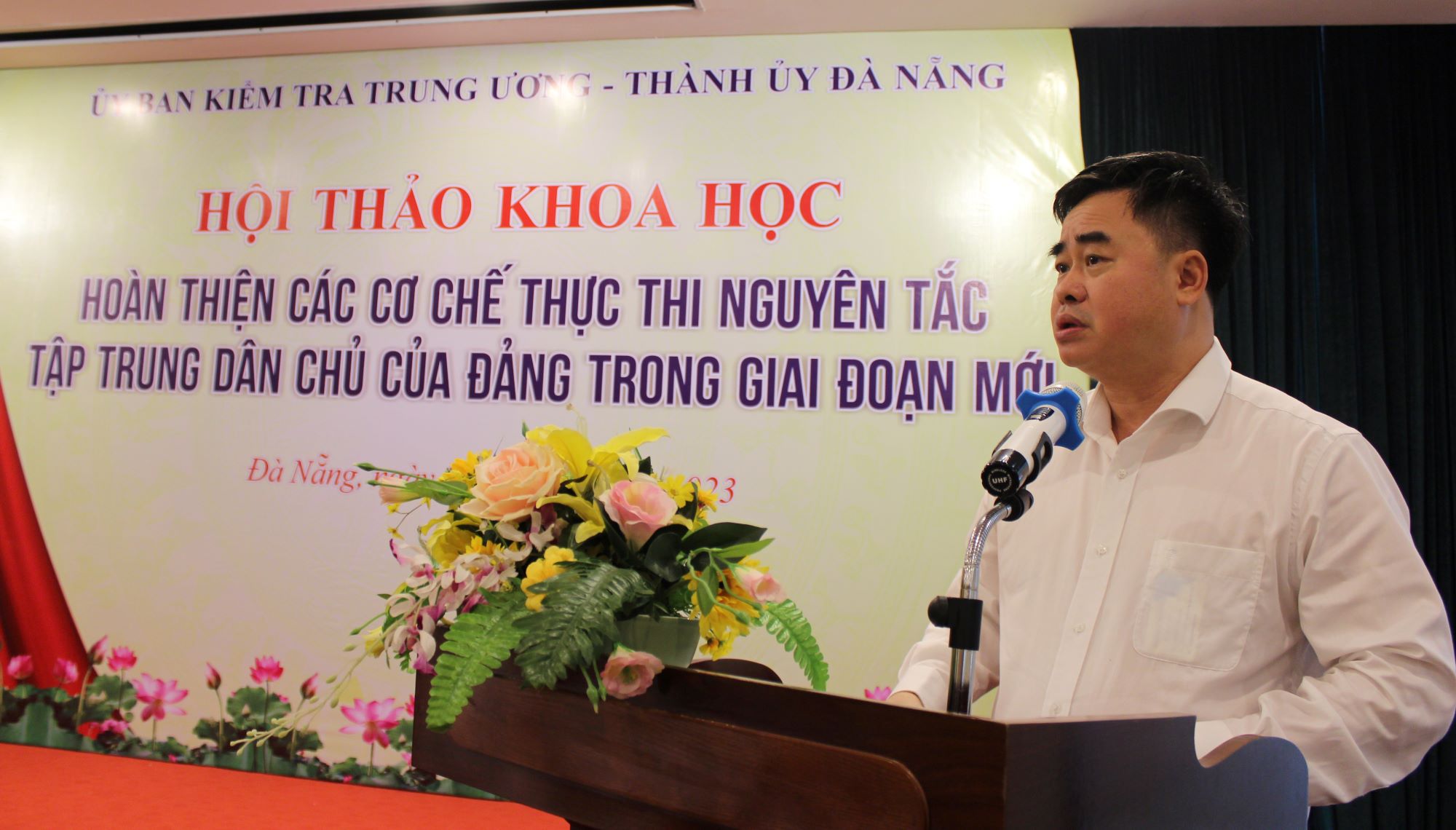 TCCS - Ngày 26-5-2023, tại thành phố Đà Nẵng, Ủy ban Kiểm tra Trung ương phối hợp với Thành ủy Đà Nẵng tổ chức Hội thảo khoa học “Hoàn thiện các cơ chế để thực thi nguyên tắc tập trung dân chủ của Đảng trong giai đoạn mới”.