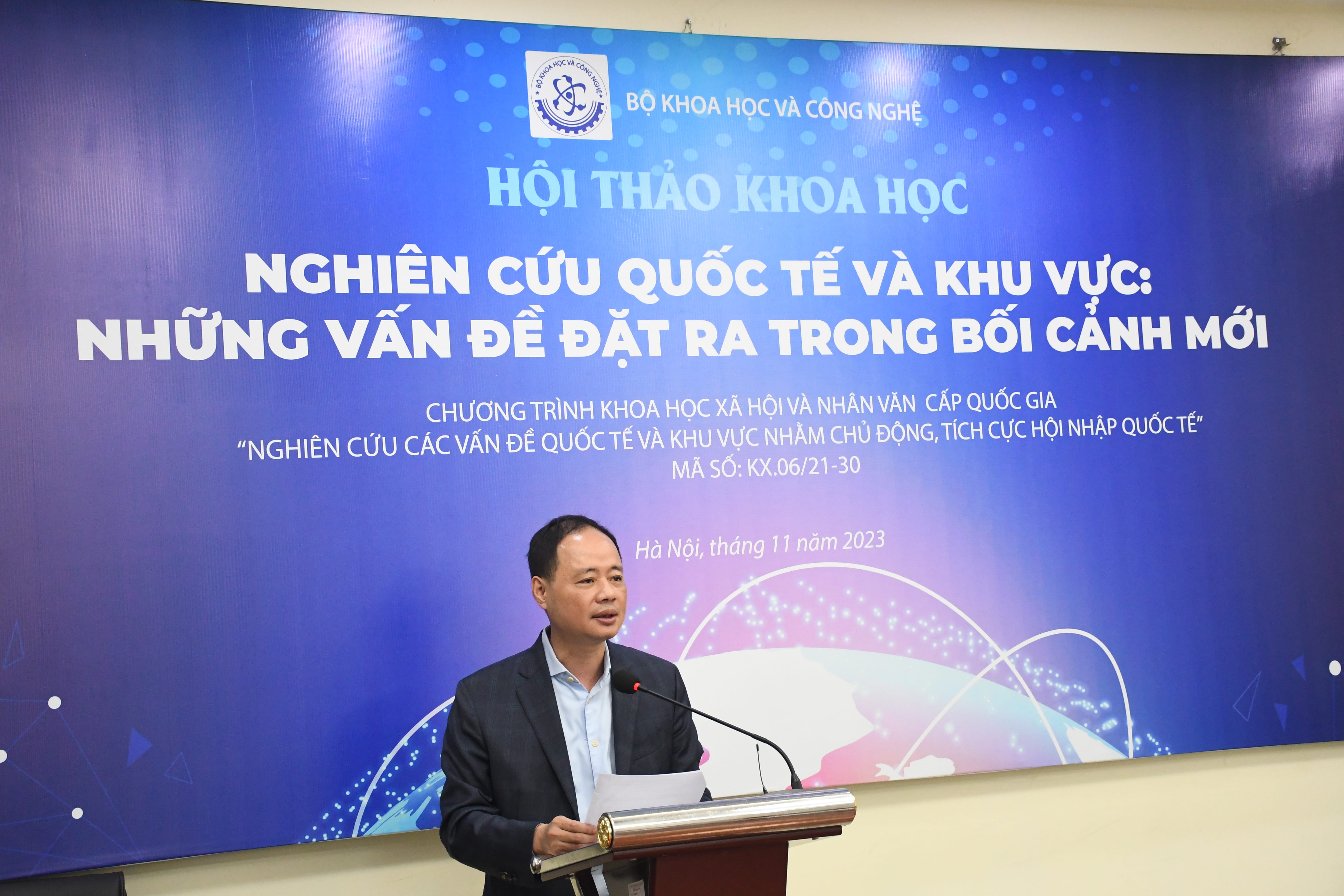 Phát biểu khai mạc hội thảo, Thứ trưởng Bộ Khoa học và Công nghệ Trần Hồng Thái nhấn mạnh, Bộ Khoa học và Công nghệ đã phê duyệt 17 chương trình khoa học và công nghệ cấp quốc gia, trong đó có 7 chương trình khoa học xã hội và nhân văn thực hiện trong giai đoạn 2021 - 2030. Chương trình “Nghiên cứu các vấn đề quốc tế và khu vực nhằm chủ động, tích cực hội nhập quốc tế”, mã số KX.06/2021-2030 là một trong 7 chương trình khoa học xã hội và nhân văn, được phê duyệt tại Quyết định số 1029/QĐ-BKHCN, ngày 20-6-2022, của Bộ trưởng Bộ Khoa học và Công nghệ, với mục tiêu tổng quát nhằm nhận diện tình hình quốc tế, khu vực để xây dựng chiến lược, các giải pháp đối ngoại phù hợp với tình hình mới, góp phần thực hiện thắng lợi các chủ trương, đường lối của Đảng và chủ động hội nhập quốc tế nhằm thực hiện mục tiêu phát triển, bảo đảm an ninh đất nước.