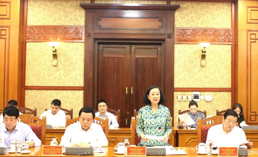 Thường trực Ban Bí thư Trương Thị Mai nêu rõ, việc tổng kết 40 năm đổi mới có ý nghĩa đặc biệt quan trọng, như đồng chí Tổng Bí thư Nguyễn Phú Trọng đã phát biểu chỉ đạo: “Đến năm 2025, trên cơ sở tổng kết 40 năm thực hiện công cuộc đổi mới, 50 năm thống nhất đất nước, cần hoàn thiện cơ bản hệ thống lý luận về đường lối đổi mới; đến năm 2030, trên cơ sở tổng kết 40 năm thực hiện Cương lĩnh xây dựng đất nước thời kỳ quá độ lên chủ nghĩa xã hội, tổng kết 100 năm Đảng lãnh đạo cách mạng Việt Nam, có thể bổ sung, phát triển Cương lĩnh, đáp ứng yêu cầu của thời kỳ mới; bổ sung, làm phong phú và tiến thêm một số bước để hoàn thiện hơn nền tảng tư tưởng của Đảng; và đến năm 2045, khi nước ta trở thành nước phát triển, có thu nhập cao thì chúng ta sẽ có một hệ thống lý luận hoàn chỉnh, khoa học và hiện đại về chủ nghĩa xã hội và con đường đi lên chủ nghĩa xã hội của Việt Nam”. Do vậy, đồng chí Trương Thị Mai đề nghị, trong quá trình tổng kết, đánh giá, cần tiếp tục khái quát hệ thống lý luận về đường lối đổi mới; cần có những đề xuất quan điểm, mục tiêu, định hướng giải pháp cho giai đoạn tới. Đặc biệt quan trọng là cần có những đề xuất, kiến nghị góp phần xây dựng dự thảo các văn kiện Đại hội XIV của Đảng tới đây.