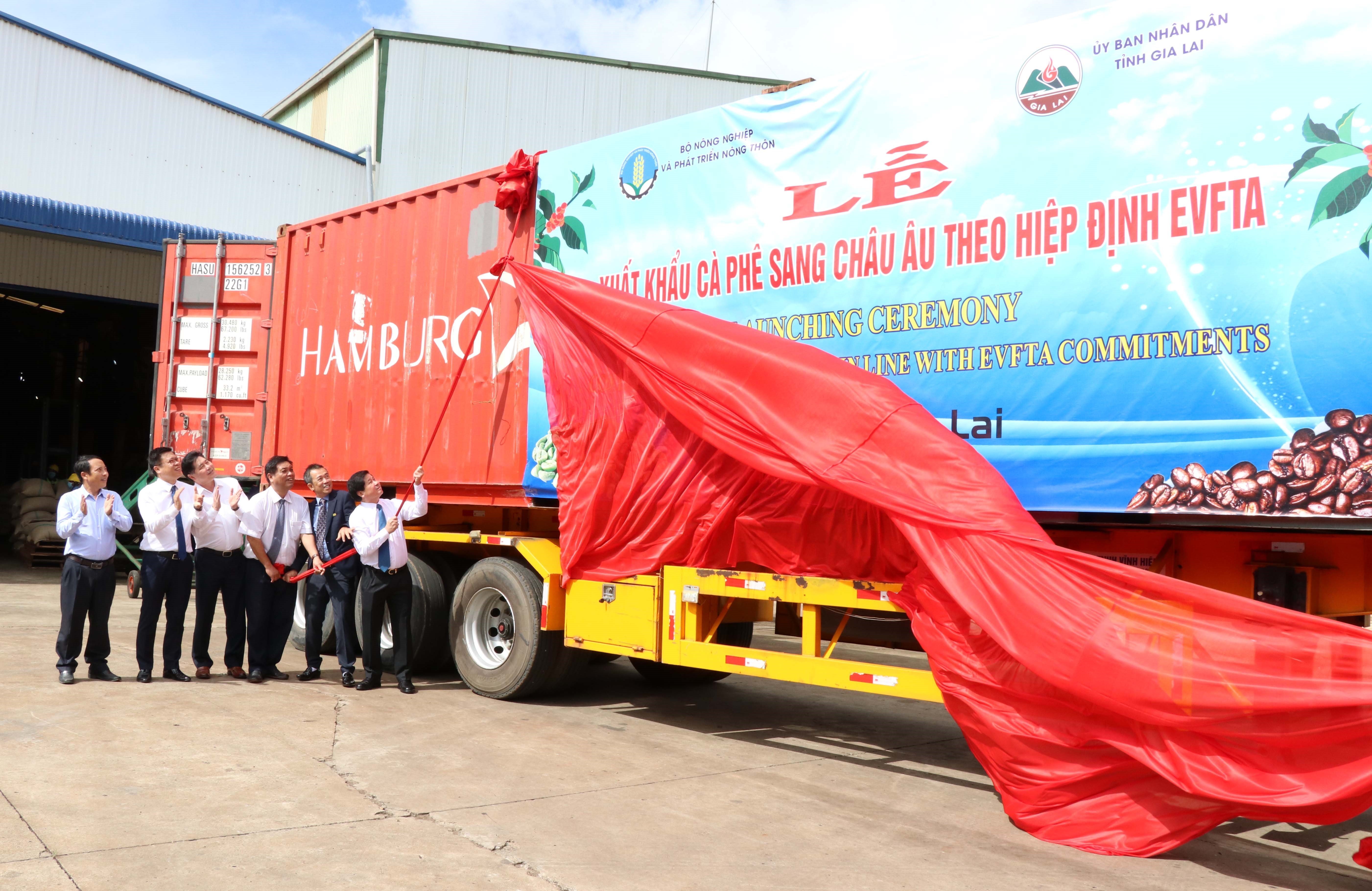 Gia Lai xuất khẩu lô cà-phê đầu tiên sang thị trường EU theo Hiệp định Thương mại tự do giữa Việt Nam và Liên minh châu Âu (EVFTA), tháng 9-2020_Ảnh: TTXVN