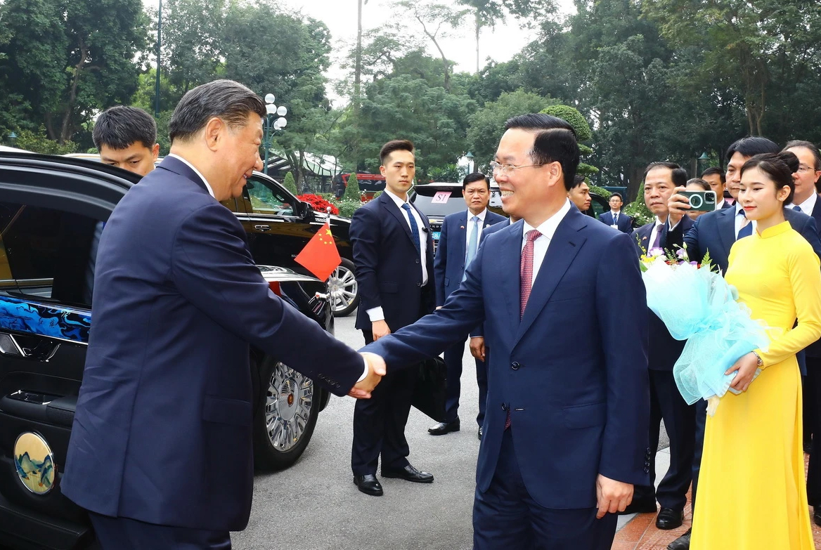 Ủy viên Bộ Chính trị, Chủ tịch nước Võ Văn Thưởng đón và hội đàm với Tổng Bí thư, Chủ tịch nước Trung Quốc Tập Cận Bình thăm cấp Nhà nước tới Việt Nam, ngày 13-12-2023 _Ảnh: TTXVN