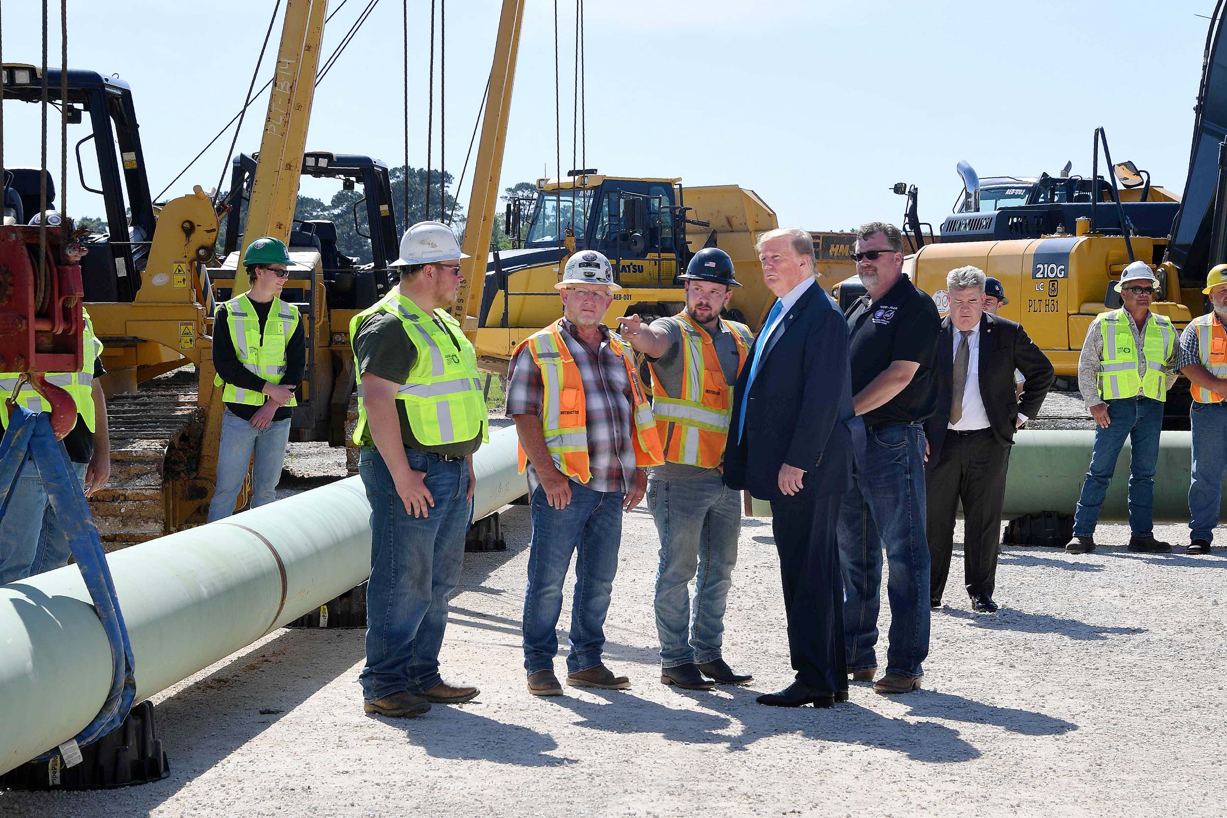 Tổng thống Mỹ Donald Trump trong cuộc gặp các công nhân khai thác dầu khí ở Crosby, bang Texas, ngày 10-4-2019 _Ảnh: AFP