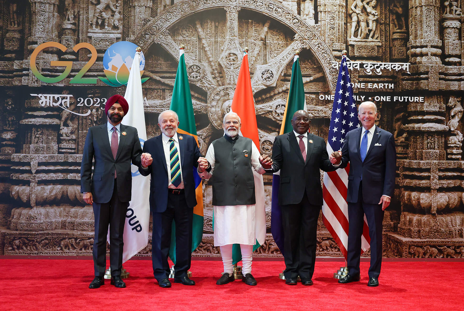 Thủ tướng Ấn Độ Narendra Modi với lãnh đạo các nước Mỹ, Nam Phi, Brazil và Chủ tịch Ngân hàng Thế giới tham dự Hội nghị thượng đỉnh G20, tại New Delhi (Ấn Độ), ngày 9-9-2023 _Nguồn: politico.com