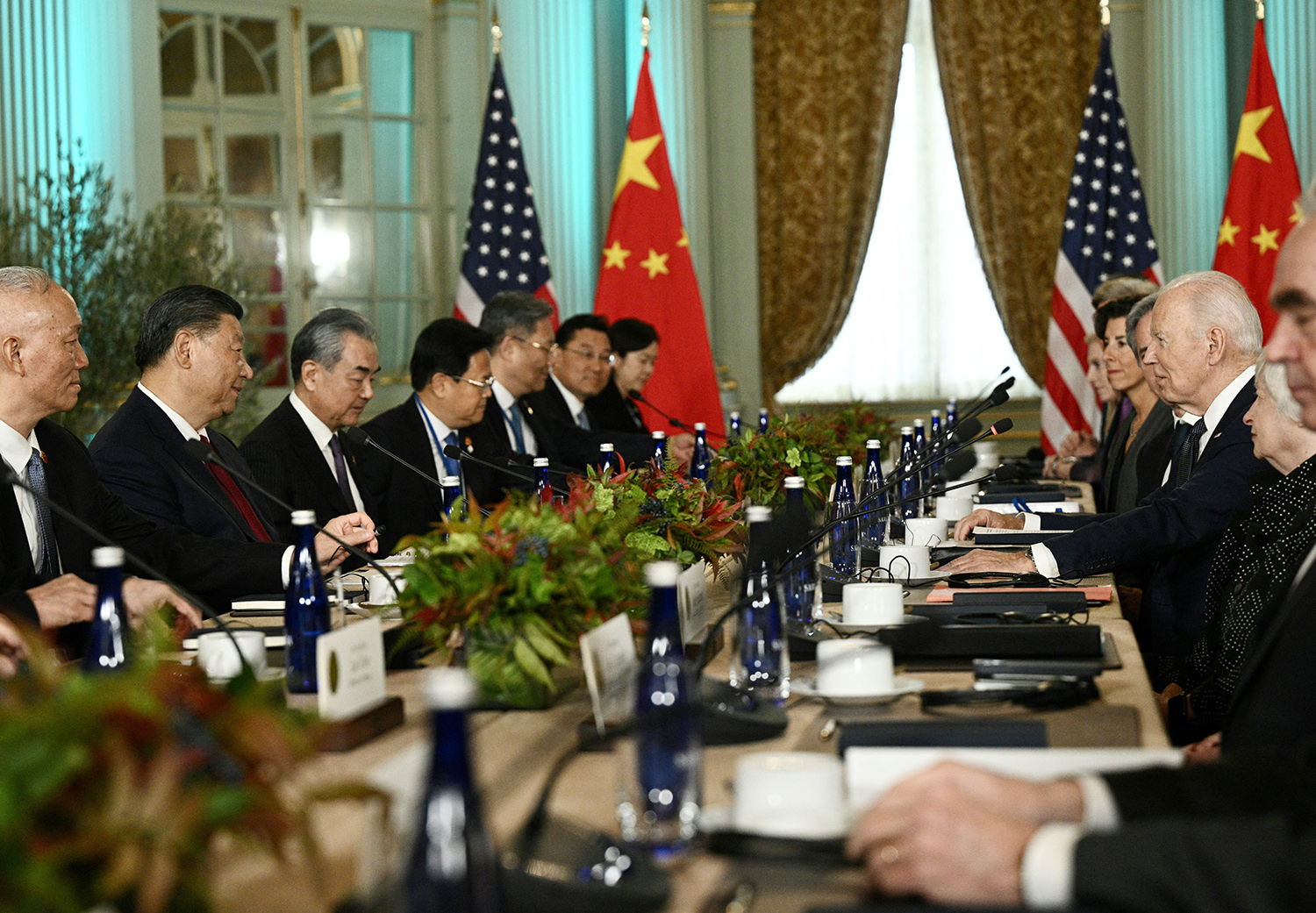 Tổng thống Mỹ Joe Biden và Tổng Bí thư, Chủ tịch Trung Quốc Tập Cận Bình trong cuộc gặp bên lề Tuần lễ cấp cao Diễn đàn Hợp tác kinh tế châu Á - Thái Bình Dương 2023, tại California (Mỹ), ngày 15-11-2023 _Ảnh: AFP/TTXVN
