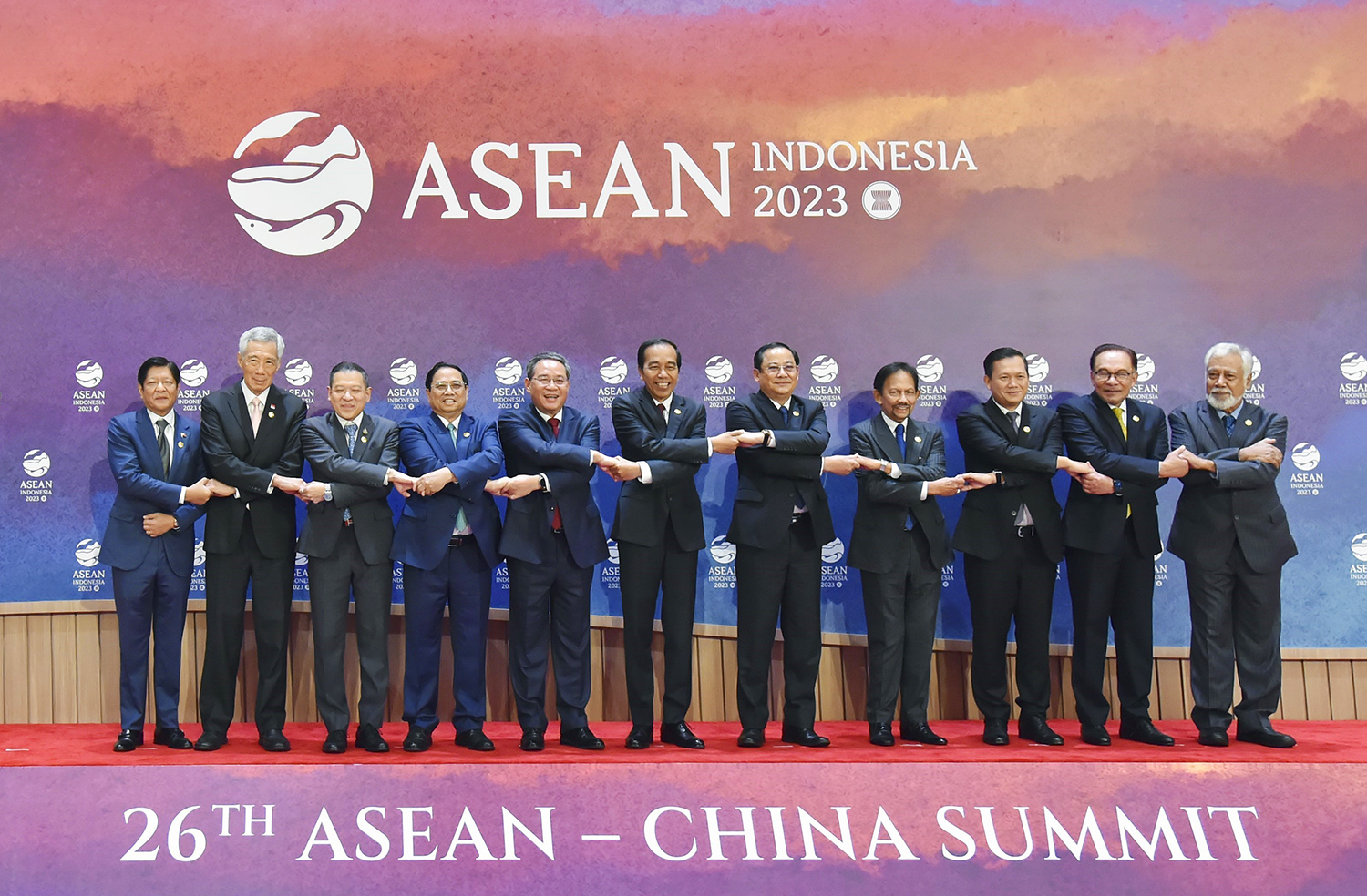 Ủy viên Bộ Chính trị, Thủ tướng Chính phủ Phạm Minh Chính và các trưởng đoàn dự Hội nghị cấp cao ASEAN - Trung Quốc lần thứ 26 _Ảnh: TTXVN