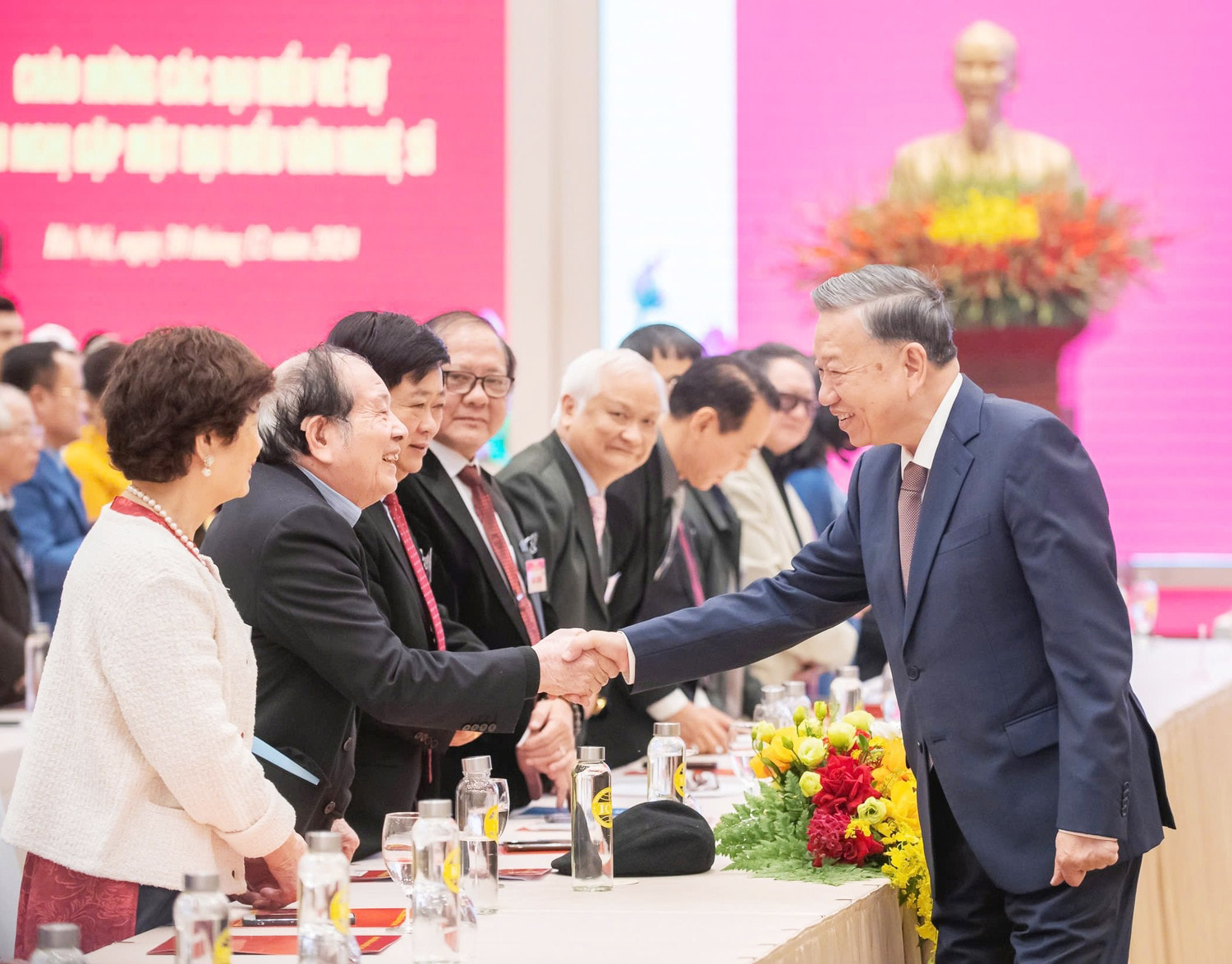 Tổng Bí thư Tô Lâm gặp mặt đại biểu văn nghệ sĩ toàn quốc _Ảnh: TTXVN