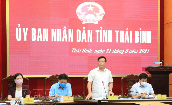 TCCS - Đó là kết quả nổi bật được đánh giá tại cuộc họp của Ủy ban nhân dân tỉnh Thái Bình nghe và cho ý kiến về báo cáo tình hình kinh tế - xã hội tháng 8 và 8 tháng năm 2021, nhiệm vụ trọng tâm tháng 9 năm 2021 vào sáng ngày 31-8-2021. Đồng chí Nguyễn Khắc Thận, Phó Bí thư Tỉnh ủy, Chủ tịch Ủy ban nhân dân tỉnh chủ trì cuộc họp.