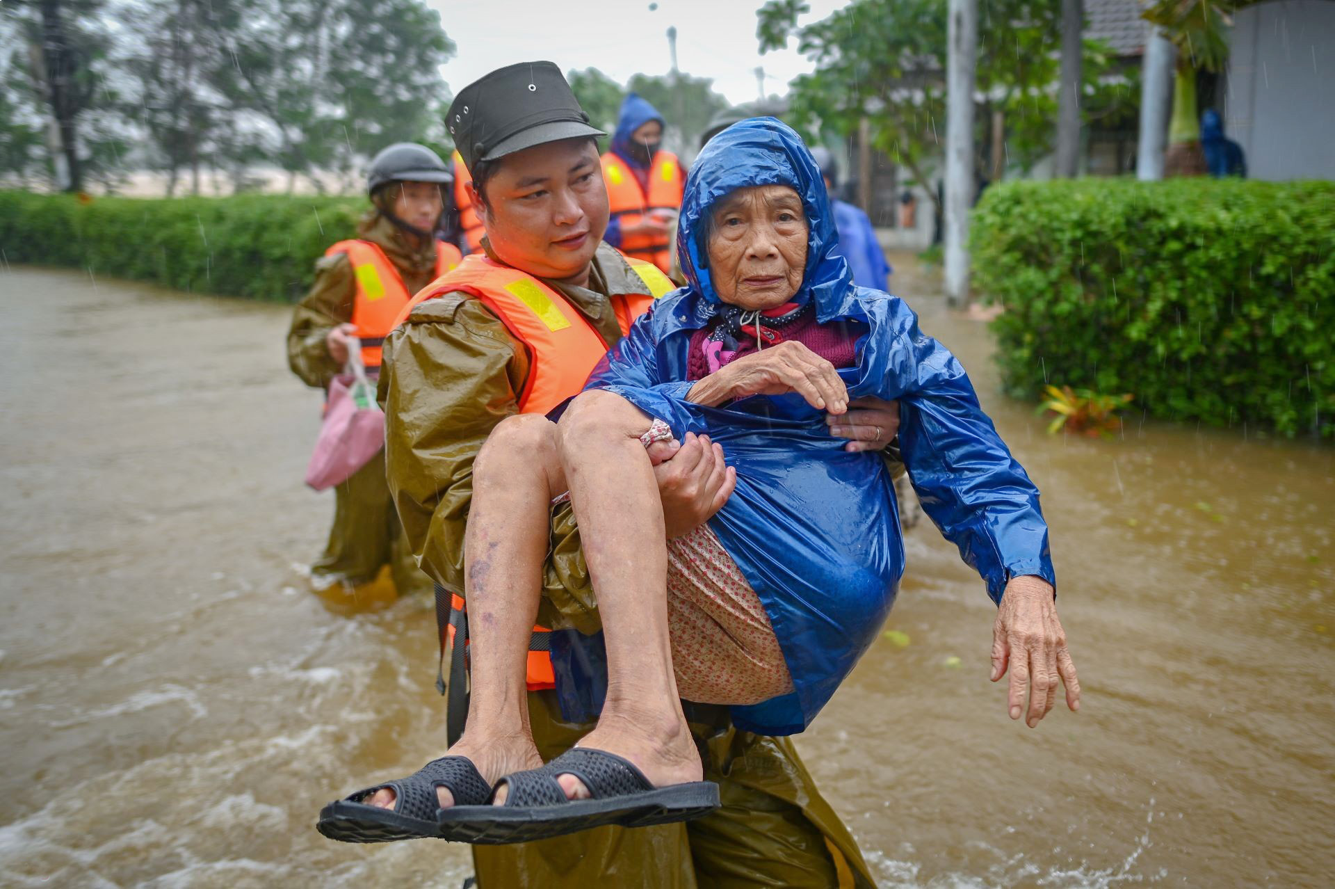 Chiến sĩ Ban Chỉ huy quân sự thị xã Ba Đồn, tỉnh Quảng Bình cứu nạn người dân trong mưa lũ_Nguồn: zing.vn