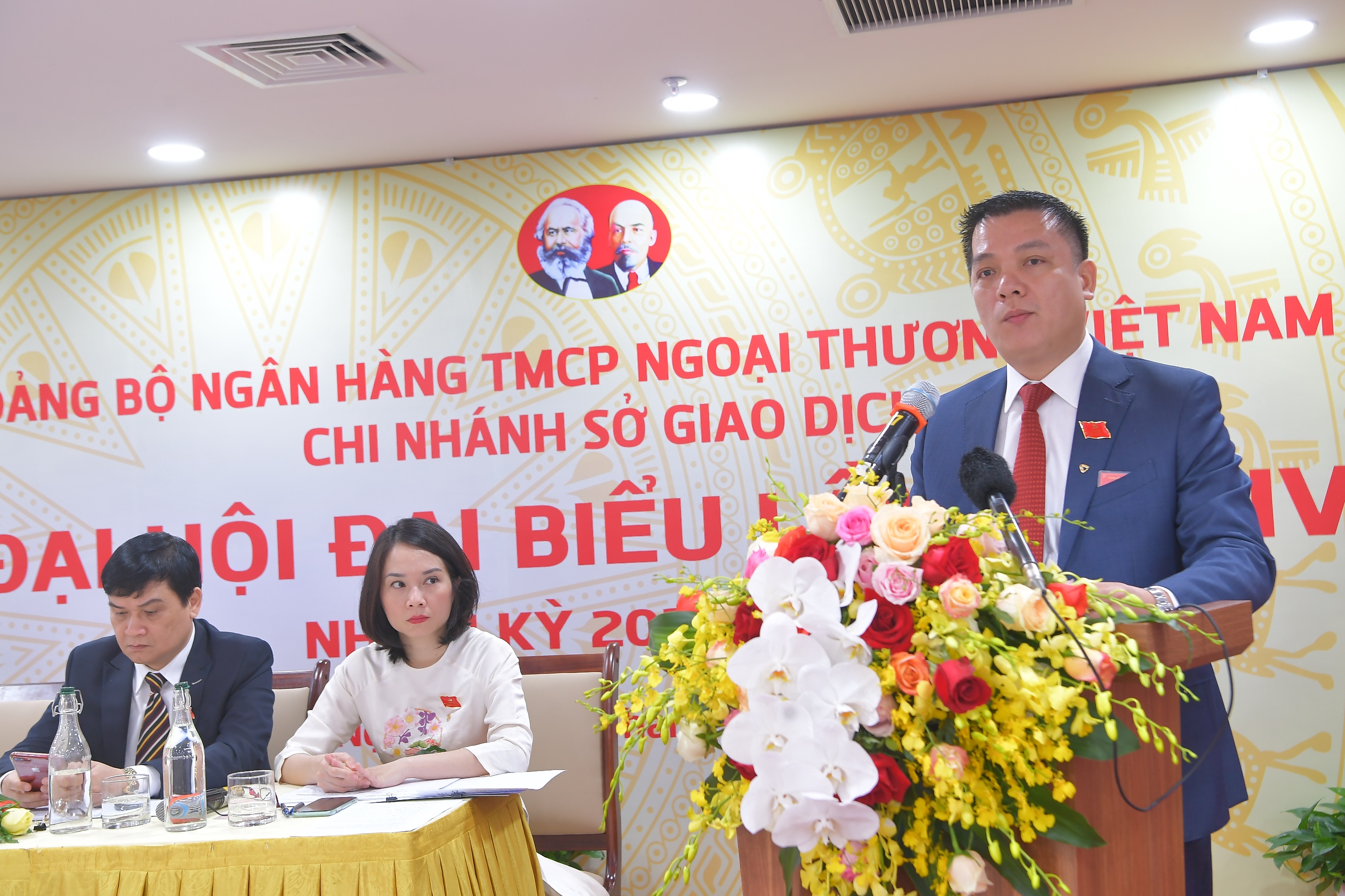Trình bày báo cáo chính trị của Đại hội, đồng chí Hồ Văn Tuấn, Bí thư Đảng ủy, Giám đốc Chi nhánh Vietcombank Sở Giao dịch khẳng định, trong nhiệm kỳ 2015 - 2020, Đảng bộ Vietcombank Sở Giao dịch lãnh đạo hoàn thành xuất sắc các nhiệm vụ chính trị, trọng tâm là thực hiện đạt và vượt các chỉ tiêu sản xuất, kinh doanh đã đề ra tại Nghị quyết Đại hội lần thứ III, trong đó nổi bật là: Huy động vốn bình quân hằng năm tăng 11,5%, hoàn thành 100% so với chỉ tiêu Nghị quyết (11-14%/năm); dư nợ cho vay bình quân hằng năm tăng 26,2%, hoàn thành 116% so với chỉ tiêu Nghị quyết (20-25%/năm); tỷ lệ nợ xấu giảm xuống còn 0,47% tổng dư nợ, hoàn thành vượt mức so với chỉ tiêu Nghị quyết (dưới 2% tổng dư nợ); thu hồi nợ ngoại bảng đạt trên 82% dư nợ ngoại bảng tại 31/12/2014, hoàn thành 164% so với chỉ tiêu Nghị quyết (50%); lợi nhuận từ hoạt động kinh doanh sau DPRR tăng trưởng 65,7%/năm so với chỉ tiêu Nghị quyết (10%/năm); các chỉ tiêu về doanh số thanh toán xuất nhập khẩu, thẻ, dịch vụ ngân hàng bán lẻ… đều tăng trưởng tốt, giữ vững được thị phần, hoàn thành 100% chỉ tiêu; kết nạp 95 đảng viên mới, hoàn thành 105% so với chỉ tiêu (90 đảng viên mới); bồi dưỡng nhận thức đảng cho 189 quần chúng ưu tú, hoàn thành 111,2% so với chỉ tiêu (170 quần chúng ưu tú)…