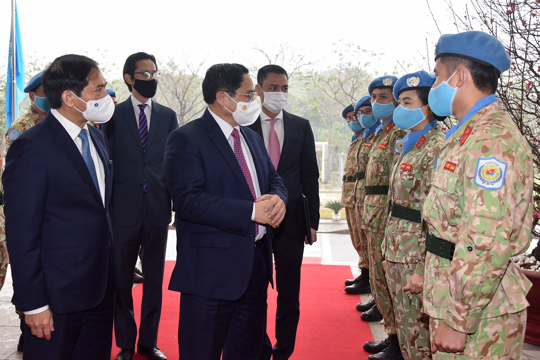 ທີສາມ, ສືບຕໍ່ປັບປຸງຖານະບົດບາດ ແລະ ກຽດສັກສີສາກົນຂອງປະເທດ. ໃນ 2 ປີແຫ່ງການຮັບຕຳແໜ່ງແລະບັນລຸຜົນສຳເລັດໃນບົດບາດຂອງສະມາຊິກບໍ່ຖາວອນຂອງສະພາຄວາມໝັ້ນຄົງແຫ່ງສະຫະປະຊາຊາດໃນປີ 2020-2021, ຫວຽດນາມໄດ້ປະກອບສ່ວນແທ້ຈິງ ສຳຄັນເຂົ້າໃນວຽກງານລວມຂອງສະພາຄວາມໝັ້ນຄົງ, ສົ່ງຂໍ້ຄວາມທີ່ແຂງແຮງກ່ຽວກັບປະເທດຫວຽດນາມທີ່ເປັນເອກະລາດ, ເປັນເຈົ້າຕົນເອງ, ປ່ຽນແປງໃໝ່, ຮັກຫອມສັນຕິພາບ, ເຄົາລົບກົດໝາຍສາກົນ, ເຊື່ອຖື, ຊື່ສັດສຸຈະລິດ, ສົມດຸນໃນພຶດຕິກໍາ, ປະກອບສ່ວນທີ່ຕັ້ງໜ້າ ແລະ ມີຄວາມຮັບຜິດຊອບຕໍ່ສັນຕະພາບ, ການຮ່ວມມື, ການພັດທະນາ ແລະ ຄວາມກ້າວໜ້າໃນໂລກ (1).ທ່ານ ຟ້າມມິີງຈິ໊ງ ກໍາມະການກົມການເມືອງສູນກາງ, ນາຍົກລັດຖະມົນຕີ ຖາມຂ່າວແລະອວຍພອນ ພະນັກງານນັກຮົບ ທີ່ເຂົ້າຮ່ວມກອງກຳລັງຮັກສາສັນຕິພາບຂອງສະຫະປະຊາຊາດທີ່ໄດ້ສຳເລັດໜ້າທີ່ ໃນກອງປະຊຸມສະຫຼຸບສອງປີທີ່ຫວຽດນາມເຂົ້າເປັນສະມາຊິກບໍ່ຖາວອນຂອງສະພາຄວາມໝັ້ນຄົງແຫ່ງສະຫະປະຊາຊາດ ໃນປີ 2020-2021, ຈັດຕັ້ງໂດຍກະຊວງການຕ່າງປະເທດ _ພາບ: VGP