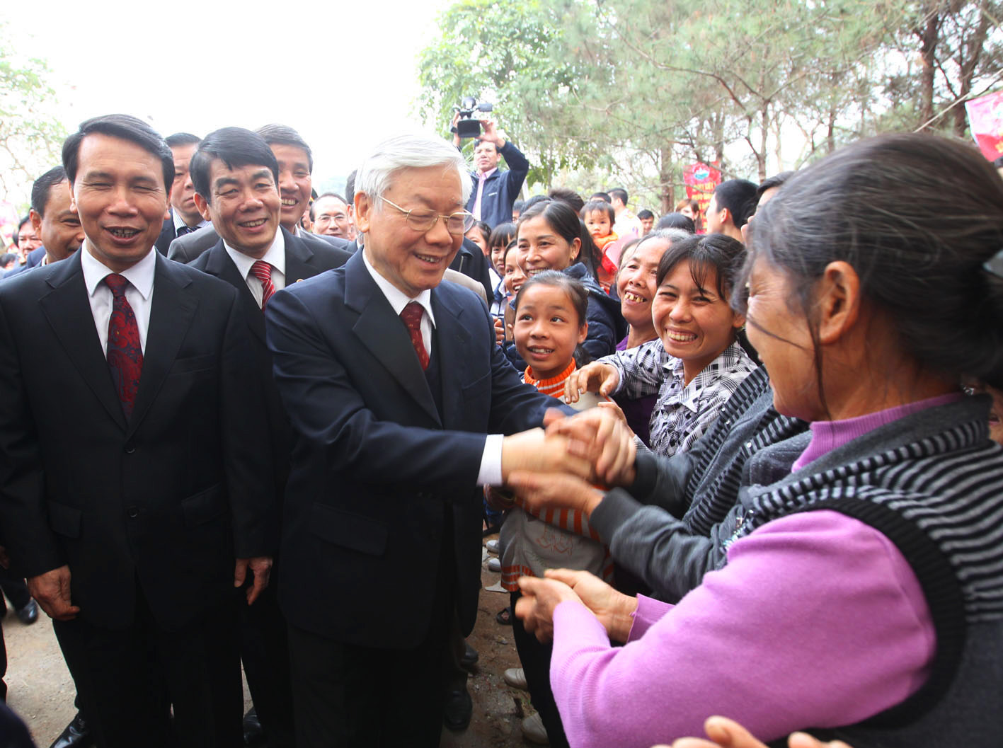 ສະຫາຍເລຂາທິການໃຫຍ່ ຫງວຽນ ຝູຈ້ອງ ກັບປະຊາຊົນຕາແສງ ເວິ້ດລ້າຍ, ເມືອງ ບາວີ່, ນະຄອນຮ່າໂນ້ຍ _ພາບ: TTXVN