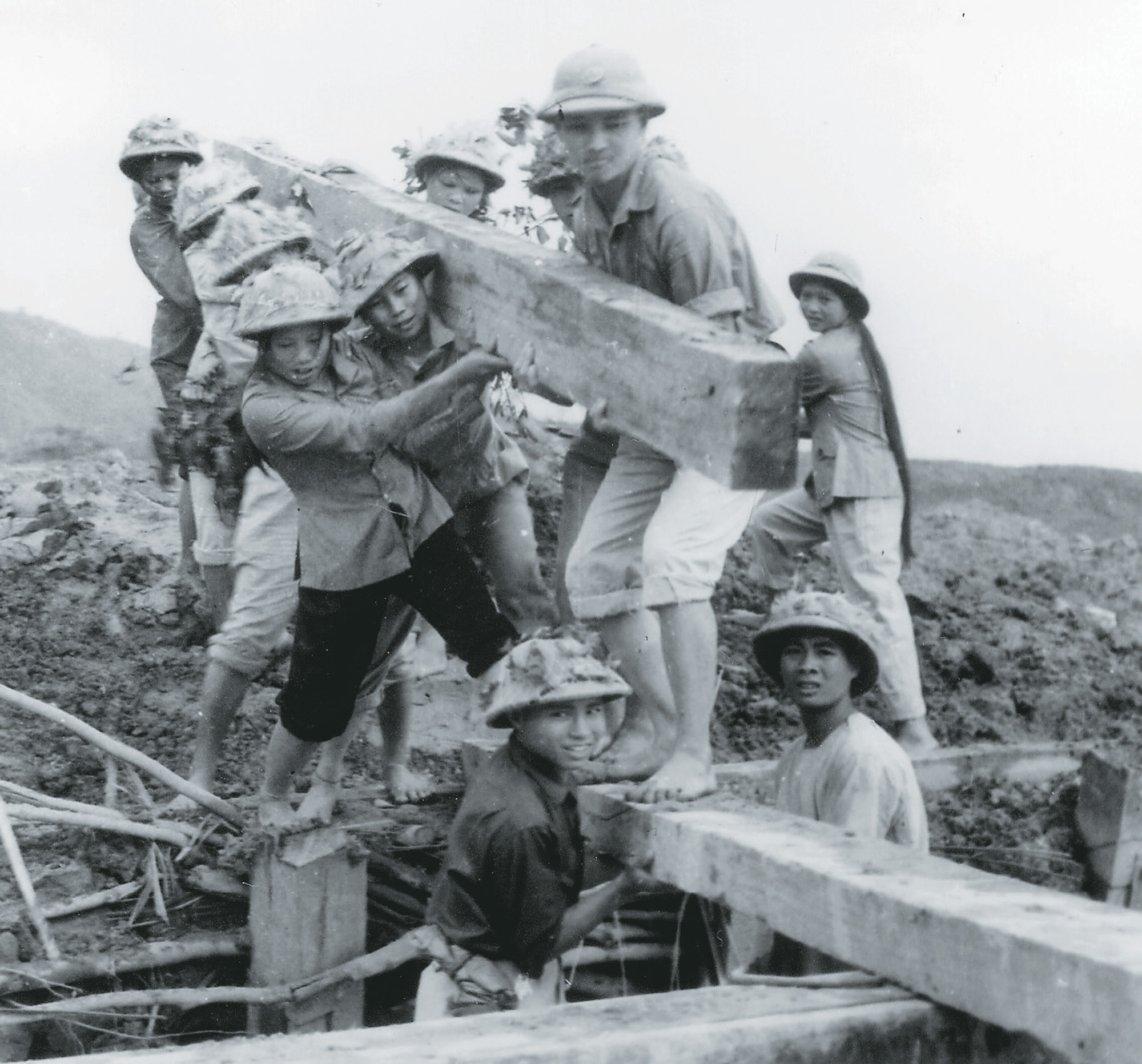 Thanh niên xung phong không quản gian khổ, hy sinh mở đường, bắc cầu cho xe trên đường Trường Sơn - đường Hồ Chí Minh huyền thoại _Nguồn: vietnamplus