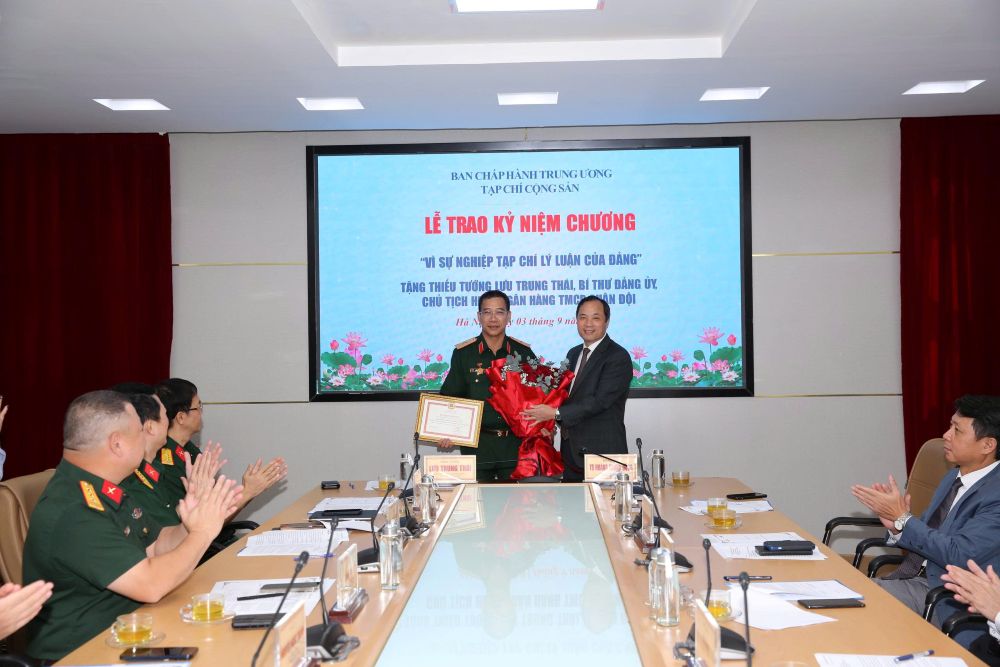 Tại lễ ký kết, đồng chí Hoàng Trung Dũng, Ủy viên Trung ương Đảng, Tổng Biên tập Tạp chí Cộng sản trao Kỷ niệm chương “Vì sự nghiệp Tạp chí lý luận của Đảng” tặng Thiếu tướng Lưu Trung Thái, ghi nhận những đóng góp quan trọng của cá nhân đồng chí Lưu Trung Thái và Ngân hàng MB trong công tác tuyên truyền lý luận của Đảng thời gian qua. Đồng chí Hoàng Trung Dũng nhấn mạnh, MB không chỉ là một định chế tài chính - ngân hàng hàng đầu, mà còn là một doanh nghiệp quân đội gương mẫu trong việc thực hiện trách nhiệm xã hội và đồng hành cùng các cơ quan báo chí cách mạng.