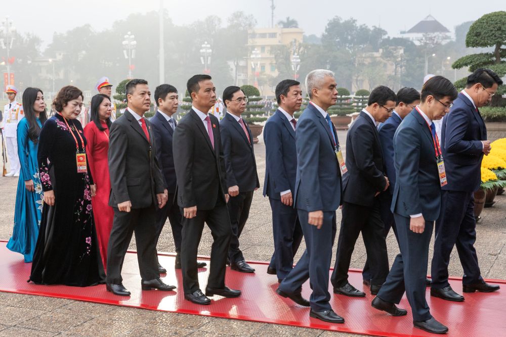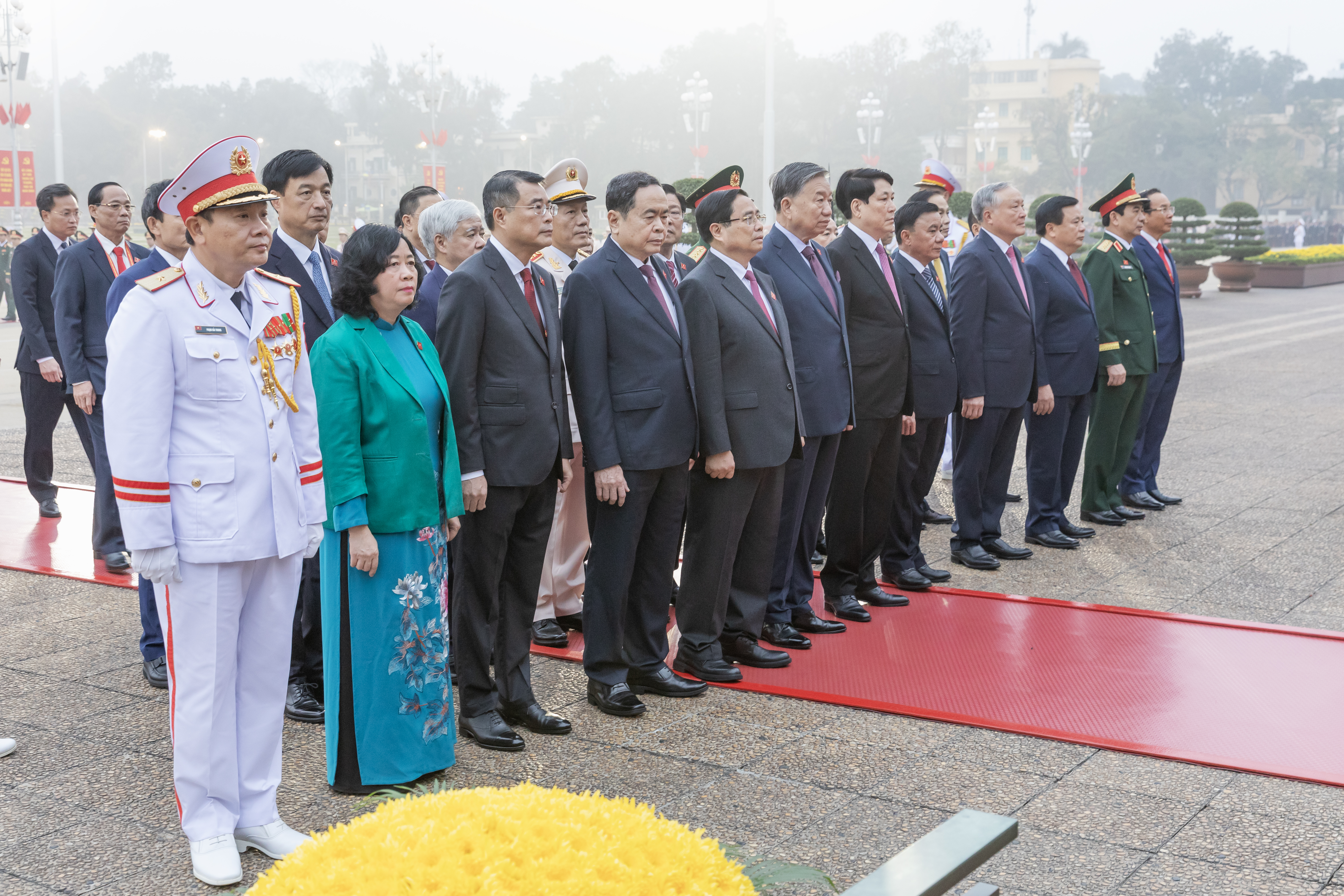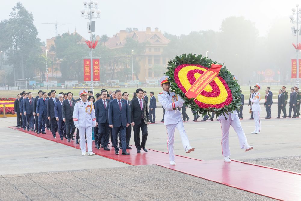TCCS - Sáng ngày 19-1-2026, trước phiên trù bị Đại hội đại biểu toàn quốc lần thứ XIV của Đảng, Tổng Bí thư Tô Lâm và các Ủy viên Bộ Chính trị: Chủ tịch nước Lương Cường, Thủ tướng Chính phủ Phạm Minh Chính, Chủ tịch Quốc hội Trần Thanh Mẫn, Thường trực Ban Bí thư Trần Cẩm Tú, cùng các đại biểu dự Đại hội đặt vòng hoa và vào Lăng viếng Chủ tịch Hồ Chí Minh - Người sáng lập, lãnh đạo và rèn luyện Đảng ta, lãnh tụ vĩ đại của Đảng, dân tộc Việt Nam.