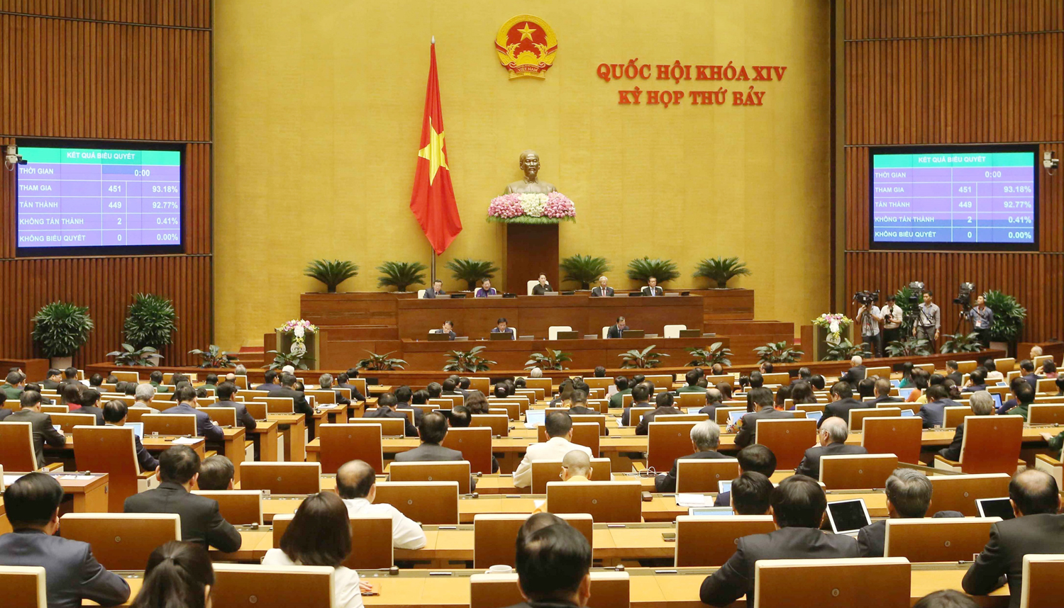 Quốc hội biểu quyết thông qua Nghị quyết kỳ họp thứ 7, Quốc hội khóa XIV_Ảnh: TTXVN