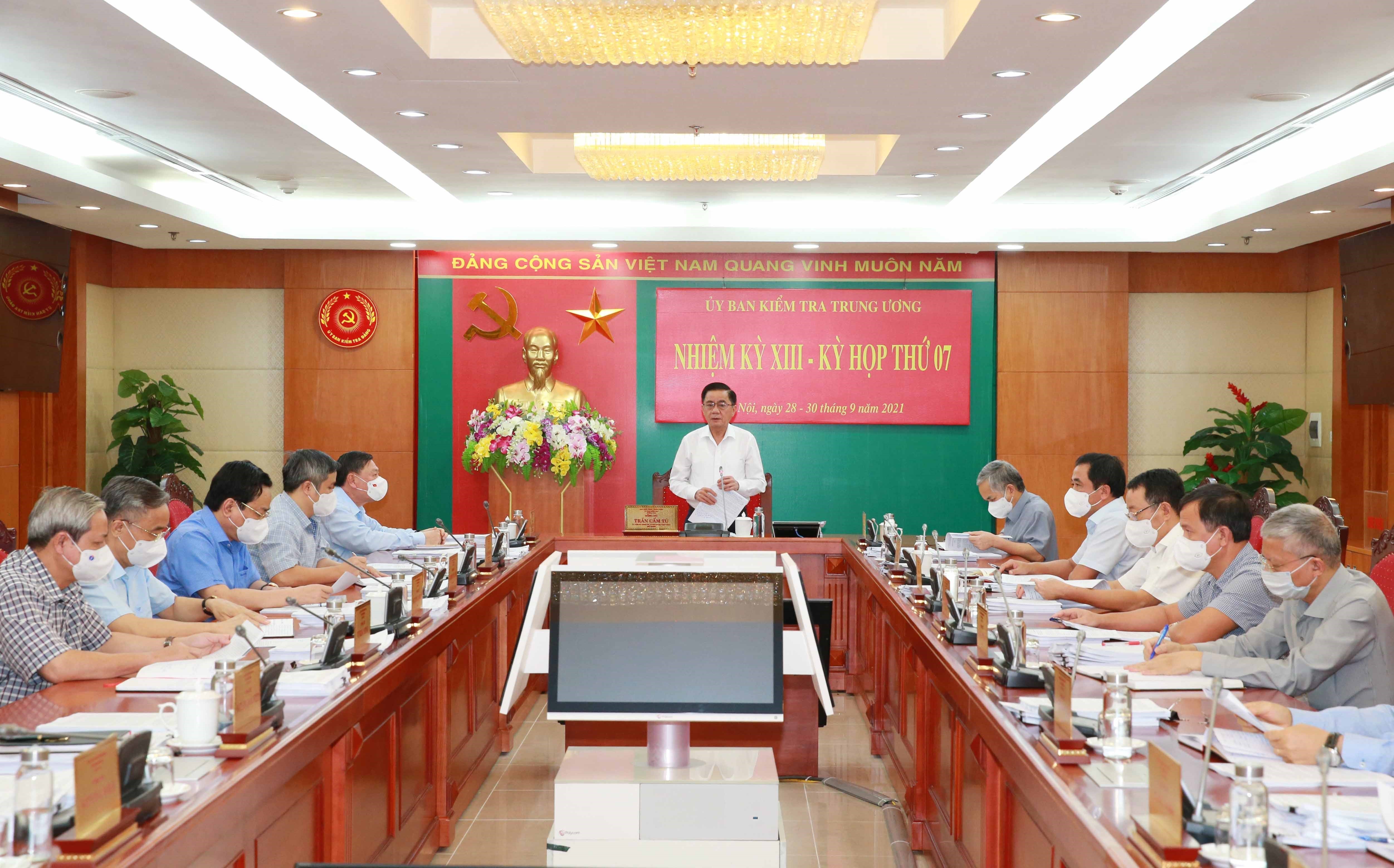 TCCS - Từ ngày 28 đến ngày 30-9-2021, Ủy ban Kiểm tra Trung ương họp Kỳ thứ 7. Đồng chí Trần Cẩm Tú, Ủy viên Bộ Chính trị, Bí thư Trung ương Đảng, Chủ nhiệm Ủy ban Kiểm tra Trung ương chủ trì kỳ họp. Tại kỳ họp này, Ủy ban Kiểm tra Trung ương đã xem xét, kết luận một số nội dung sau: