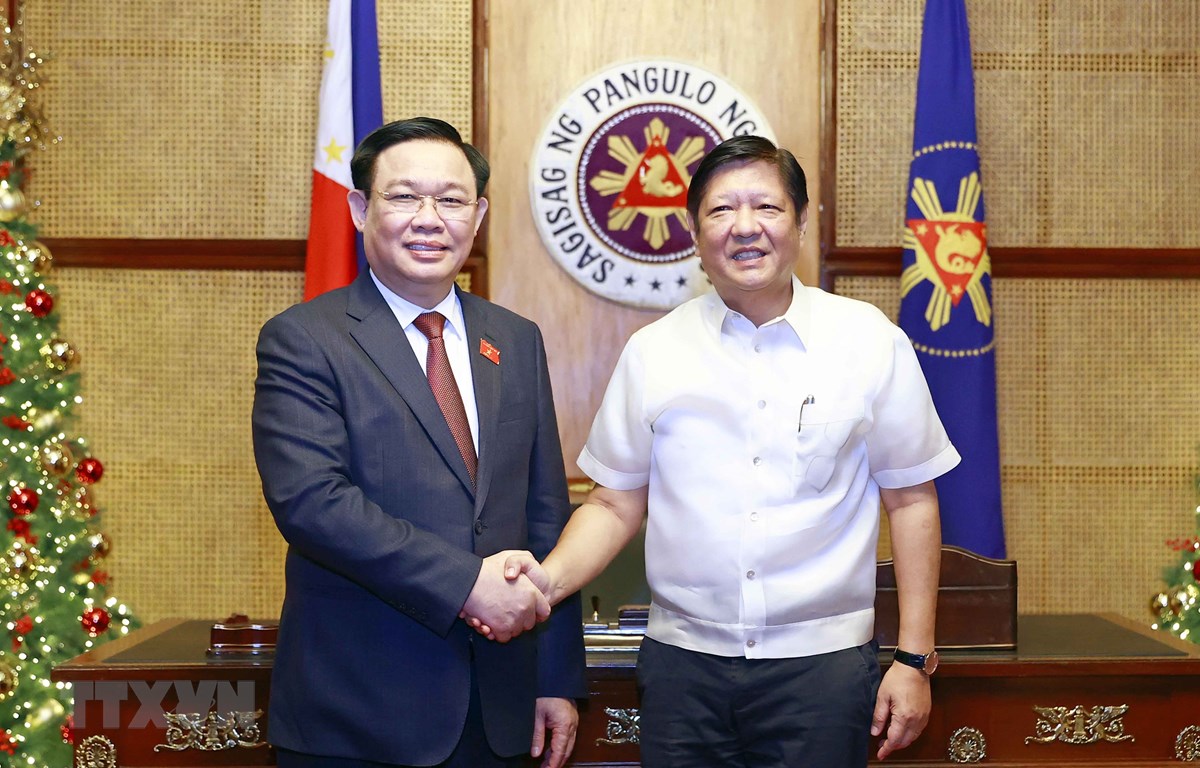 Chủ tịch Quốc hội Vương Đình Huệ trân trọng chuyển lời chào của Tổng Bí thư Nguyễn Phú Trọng tới Tổng thống Ferdinand Marcos và lời mời của Chủ tịch nước Nguyễn Xuân Phúc mời Tổng thống Ferdinand Marcos và Phu nhân sớm thăm Việt Nam trong thời gian tới. Thông báo với Tổng thống Philippines về kết quả của cuộc hội đàm trước đó với Chủ tịch Hạ viện Philippines Martin Romualdez và Chủ tịch Thượng viện Juan Miguel Zubiri, Chủ tịch Quốc hội Vương Đình Huệ khẳng định chính sách của Việt Nam không ngừng củng cố và thúc đẩy quan hệ Đối tác chiến lược với Philippines trên mọi lĩnh vực; cho rằng Việt Nam và Philippines cần thúc đẩy hơn nữa quan hệ trên tất cả các kênh Đảng, Nhà nước, Quốc hội, Chính phủ và nhân dân, nhất là khi hai nước là láng giềng gần gũi, có sự tương đồng về quy mô dân số và trình độ phát triển, là nền tảng quan trọng để phát triển quan hệ song phương.