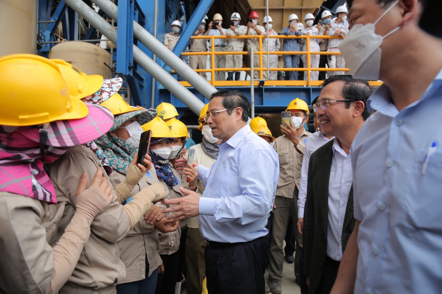 Ủy viên Bộ Chính trị, Thủ tướng Chính phủ Phạm Minh chính thăm hỏi động viên công nhân lao động tại dự án NMNĐ Thái Bình 2_Ảnh: PVN
