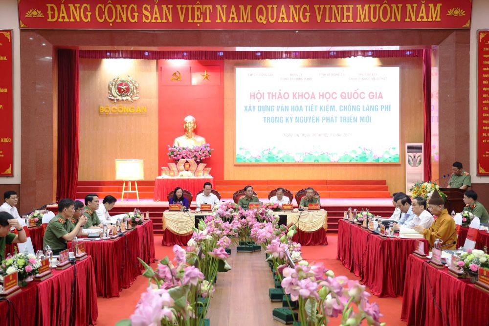 TCCS - Ngày 16-5-2025, tại thành phố Vinh (tỉnh Nghệ An), Tạp chí Cộng sản, Đảng ủy Công an Trung ương, Tỉnh ủy Nghệ An và Nhà xuất bản Chính trị quốc gia Sự thật đồng chủ trì, tổ chức Hội thảo khoa học quốc gia “Xây dựng văn hóa tiết kiệm, chống lãng phí trong kỷ nguyên phát triển mới” và Lễ giới thiệu bộ sách “Văn kiện Đảng về an ninh, trật tự (1924 - 2024)”.