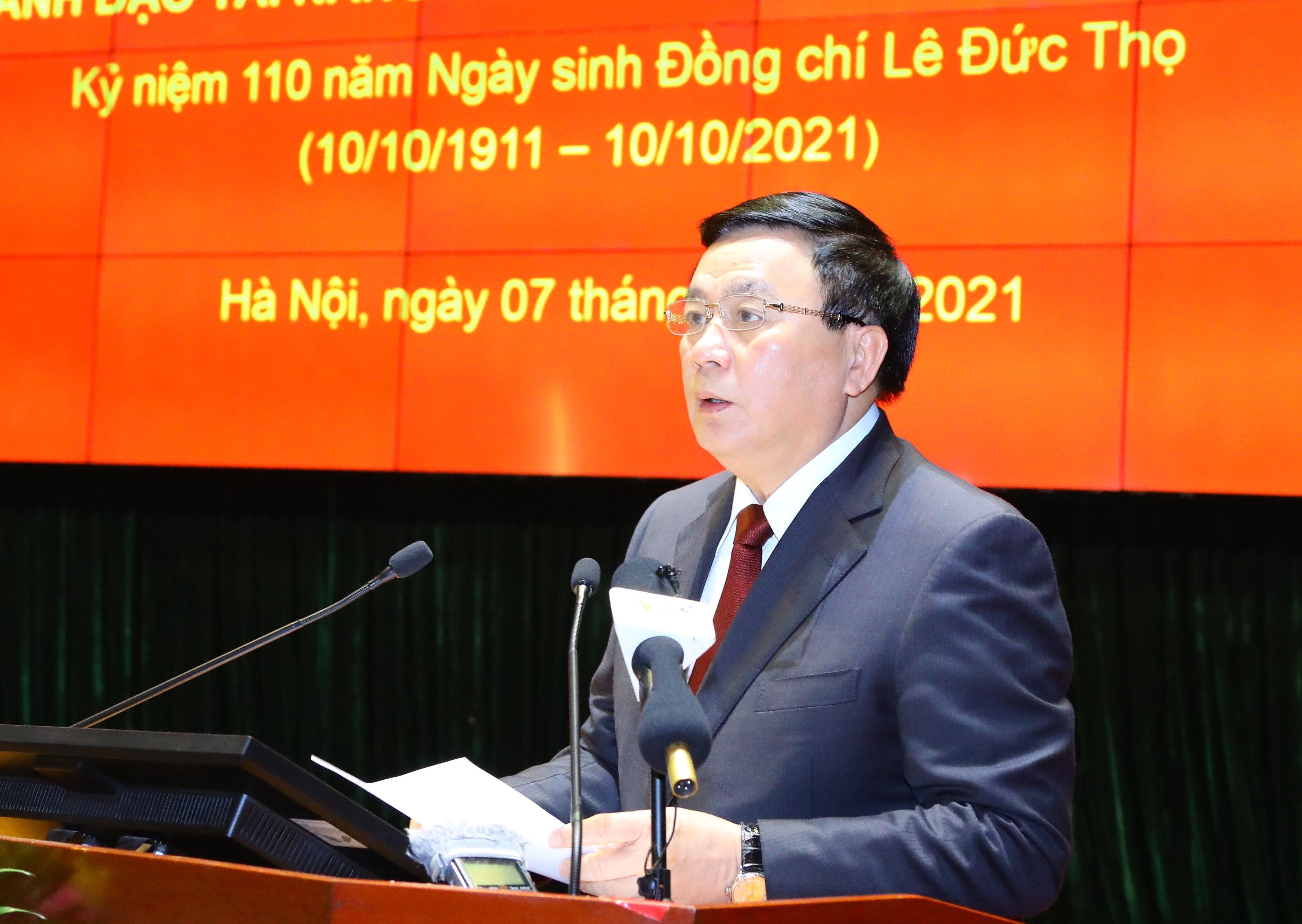 TCCS - Ngày 7-10-2021, Hội thảo khoa học “Đồng chí Lê Đức Thọ với cách mạng Việt Nam và quê hương Nam Định” do Học viện Chính trị quốc gia Hồ Chí Minh, Ban Tuyên giáo Trung ương và Tỉnh ủy Nam Định phối hợp tổ chức đã diễn ra theo hình thức trực tuyến hai điểm cầu Học viện Chính trị quốc gia Hồ Chí Minh (Hà Nội) và Tỉnh ủy Nam Định. Hội thảo được tổ chức nhân kỷ niệm 110 năm ngày sinh của đồng chí Lê Đức Thọ (10-10-1911 – 10-10-2021).
