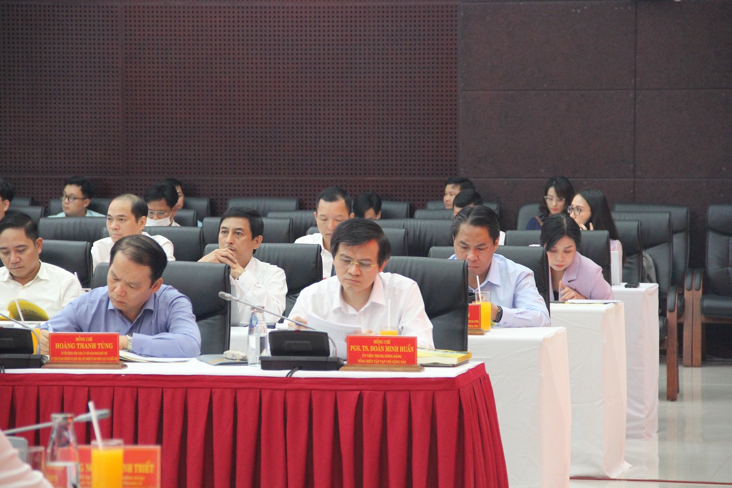 Các đồng chí Ủy viên Bộ Chính trị: Trương Thị Mai, Bí thư Trung ương Đảng, Trưởng Ban Tổ chức Trung ương; GS, TS. Nguyễn Xuân Thắng, Chủ tịch Hội đồng Lý luận Trung ương, Giám đốc Học viện Chính trị quốc gia Hồ Chí Minh, cùng các đồng chí Ủy viên Trung ương Đảng: Phó Trưởng Ban Tổ chức Trung ương Nguyễn Quang Dương; Bí thư Thành ủy Đà Nẵng Nguyễn Văn Quảng đồng chủ trì hội thảo.