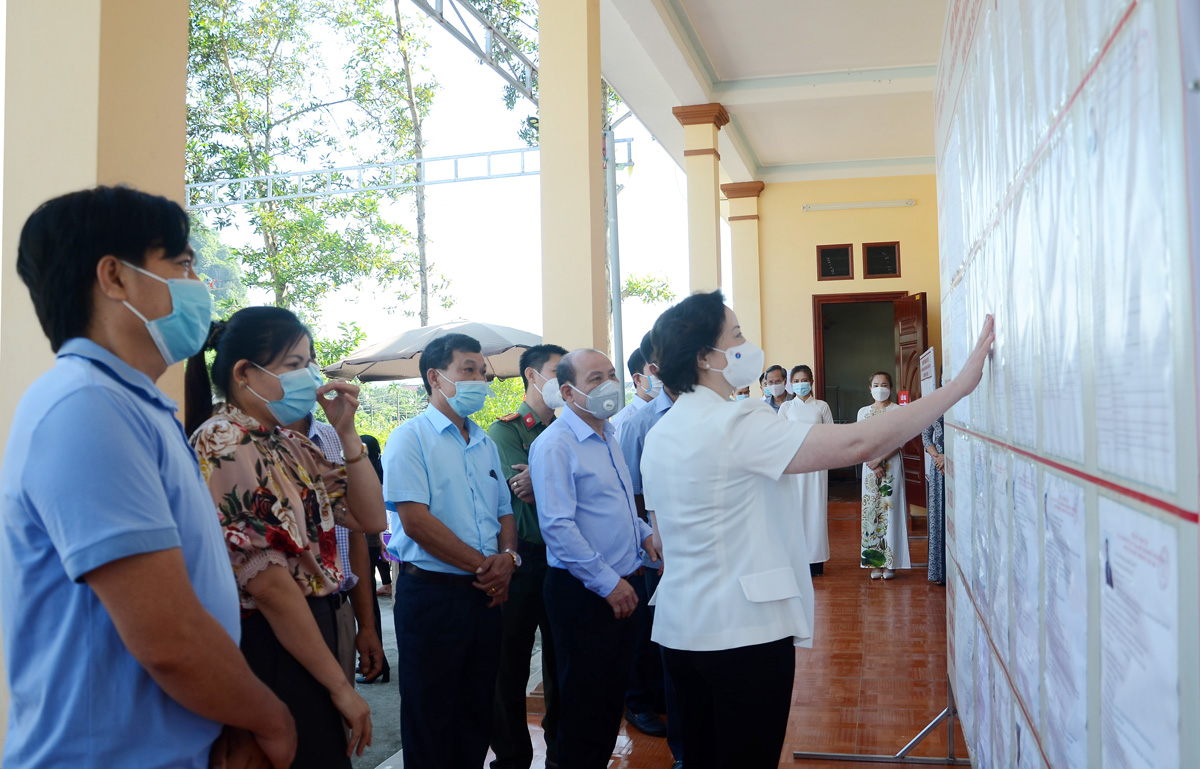 Ủy viên Trung ương Đảng, Phó Trưởng Ban Tổ chức Trung ương, Bộ trưởng Bộ Nội vụ Phạm Thị Thanh Trà kiểm tra công tác bầu cử tại xã Vĩnh Tiến, huyện Kim Bôi, tỉnh Hòa Bình _Ảnh: tcnn.vn