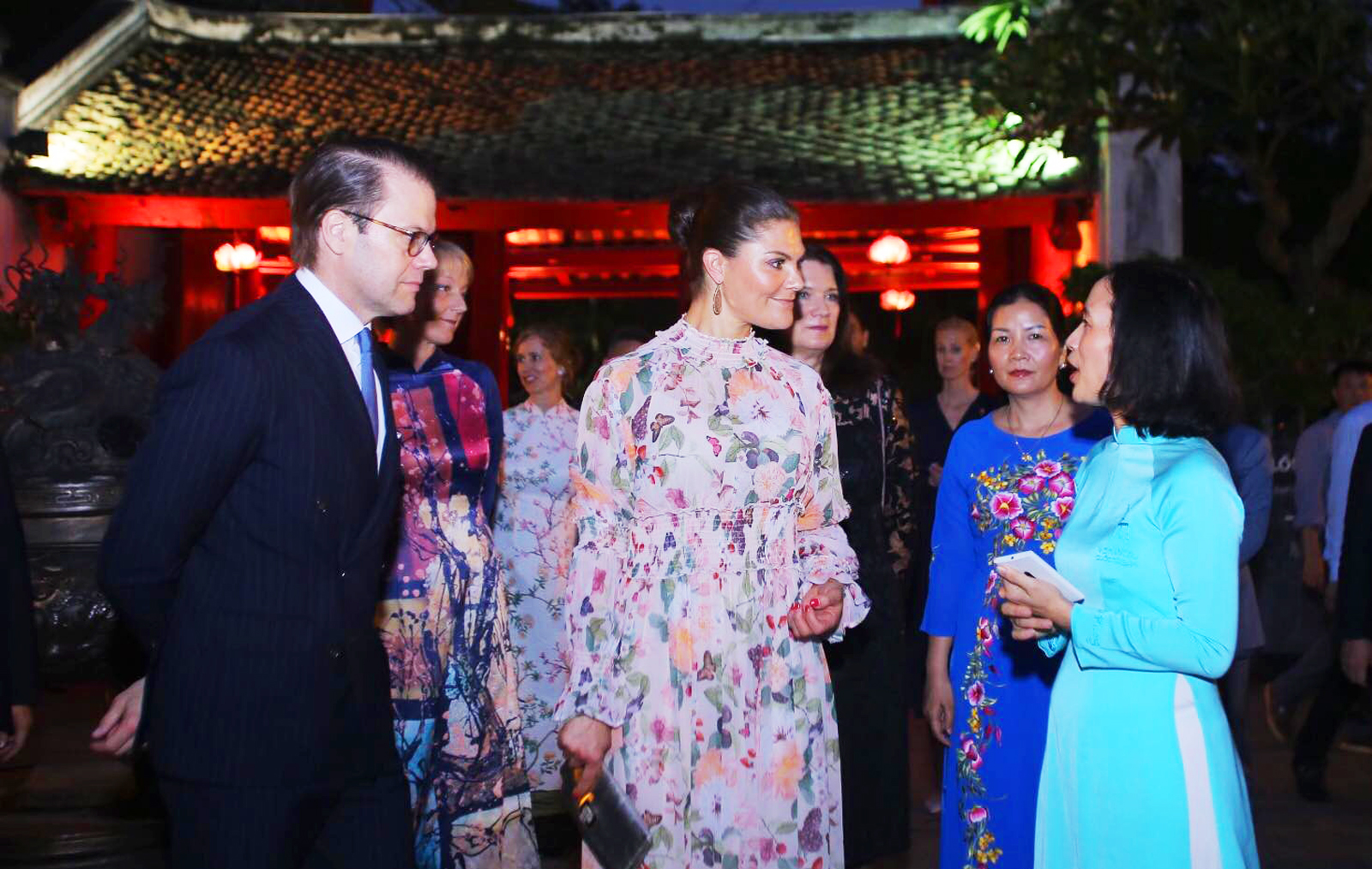 Công chúa kế vị Thuỵ Điển Victoria Ingrid Alice Désiree và phu quân tham quan Khu di tích quốc gia đặc biệt Văn Miếu - Quốc Tử Giám trong chuyến thăm chính thức Việt Nam, năm 2019 _Ảnh: TTXVN