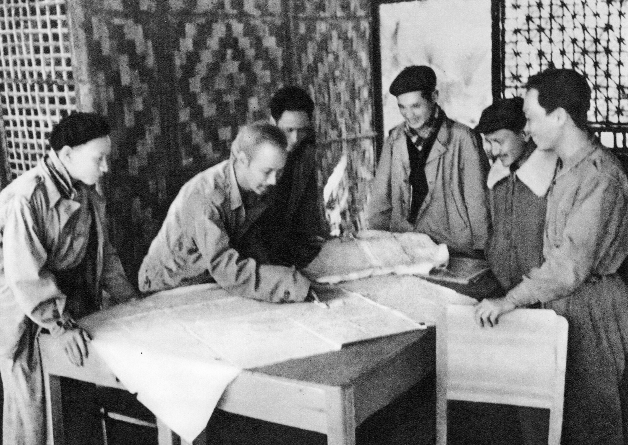 Ngày 14-4-1975, Bộ Chính trị quyết định đặt tên cho Chiến dịch giải phóng Sài Gòn - Gia Định là Chiến dịch Hồ Chí Minh với phương châm “Thần tốc, táo bạo, bất ngờ, chắc thắng” (Trong ảnh: Đại tướng Võ Nguyên Giáp cùng các đồng chí trong Quân ủy Trung ương duyệt phương án tác chiến Chiến dịch Hồ Chí Minh, tại Hà Nội, tháng 4-1975) _Ảnh: TTXVN