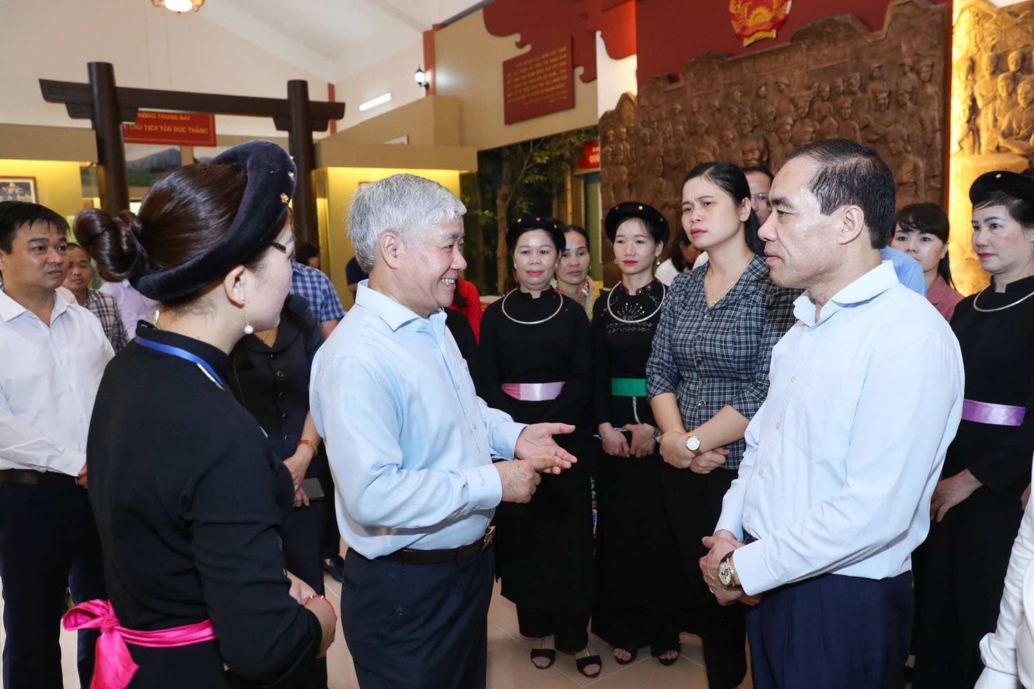 Bí thư Trung ương Đảng, Chủ tịch Ủy ban Trung ương Mặt trận Tổ quốc Việt Nam Đỗ Văn Chiến trò chuyện với đại biểu tại Khu di tích Quốc gia đặc biệt Tân Trào, huyện Sơn Dương, tỉnh Tuyên Quang _Nguồn: daidoanket.vn
