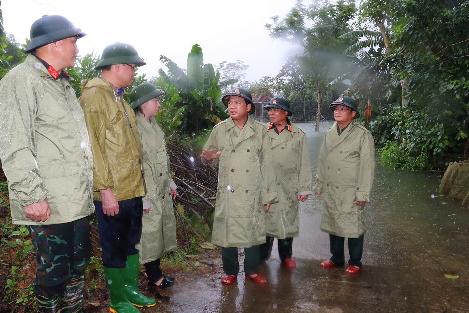 Thượng tướng Trịnh Văn Quyết, Bí thư Trung ương Đảng, Ủy viên Thường vụ Quân ủy Trung ương, Chủ nhiệm Tổng cục Chính trị kiểm tra công tác cứu hộ, cứu nạn tại vùng lũ ở tỉnh Tuyên Quang _Ảnh: TTXVN