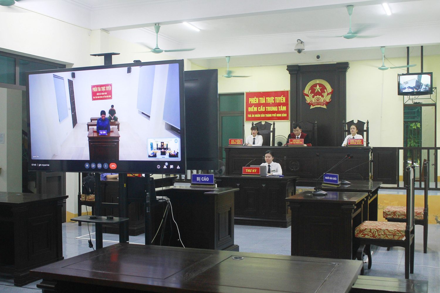 Phiên tòa xét xử trực tuyến tại thành phố Ninh Bình, tỉnh Ninh Bình _Ảnh: TTXVN