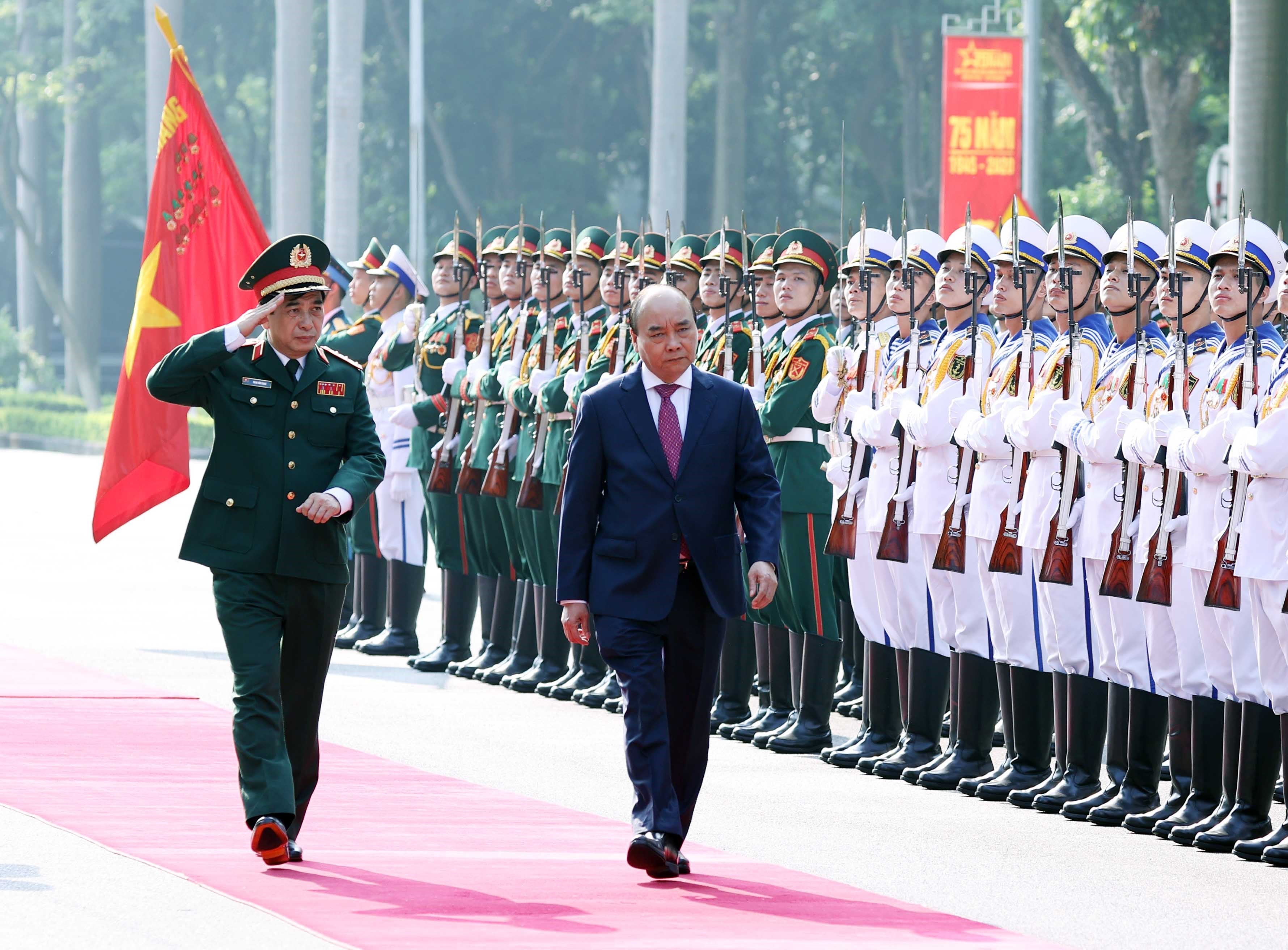Ủy viên Bộ Chính trị, Thủ tướng Chính phủ Nguyễn Xuân Phúc duyệt đội danh dự tại Lễ kỷ niệm 75 năm Ngày truyền thống Bộ Tổng tham mưu Quân đội nhân dân Việt Nam (7-9-1945 - 7-9-2020) và đón nhận Huân chương Bảo vệ Tổ quốc hạng Nhất _Ảnh: TTXVN