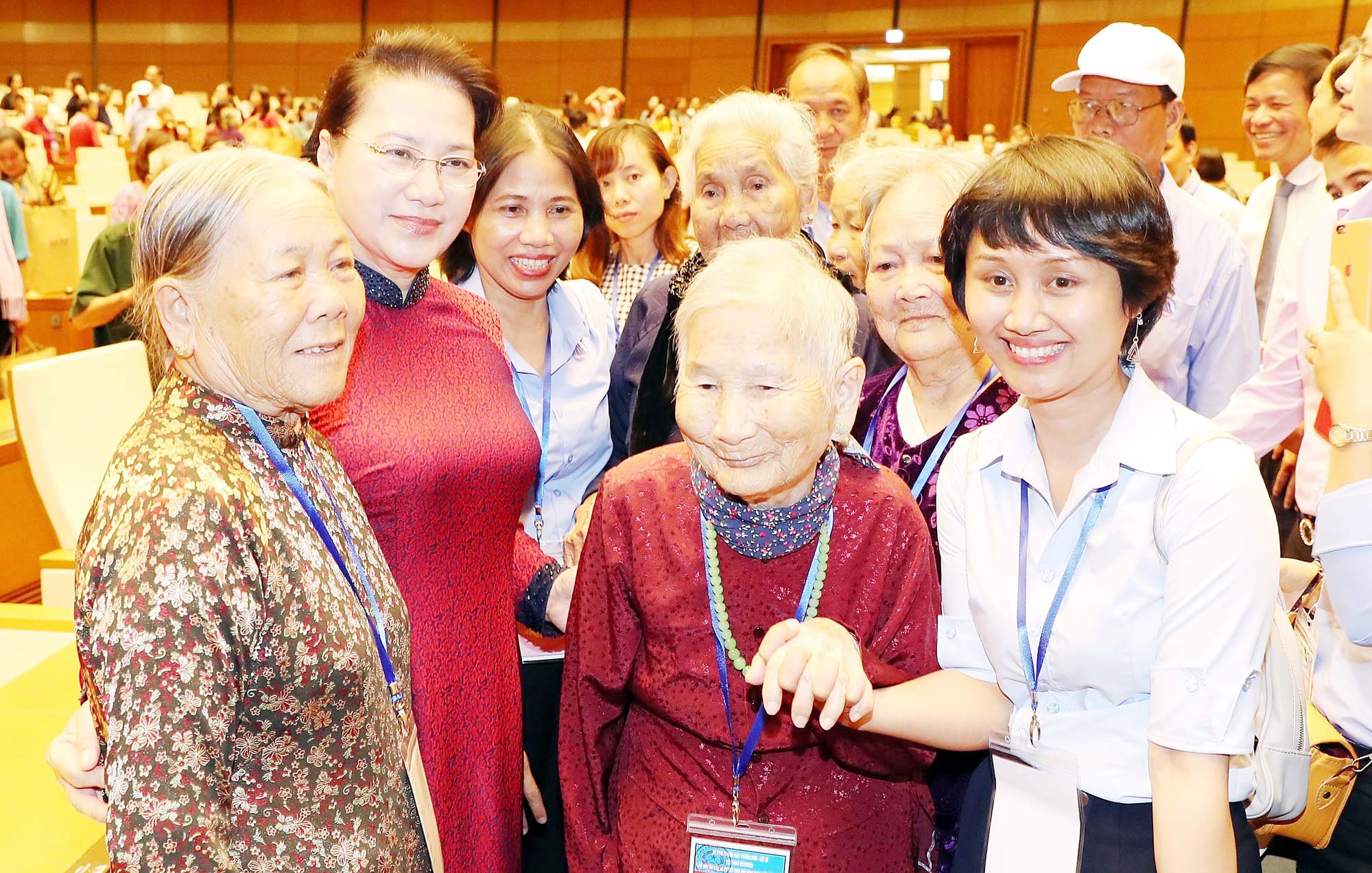 Ủy viên Bộ Chính trị, Chủ tịch Quốc hội Nguyễn Thị Kim Ngân với các Mẹ Việt Nam Anh hùng tại buổi gặp mặt_Ảnh: TTXVN
