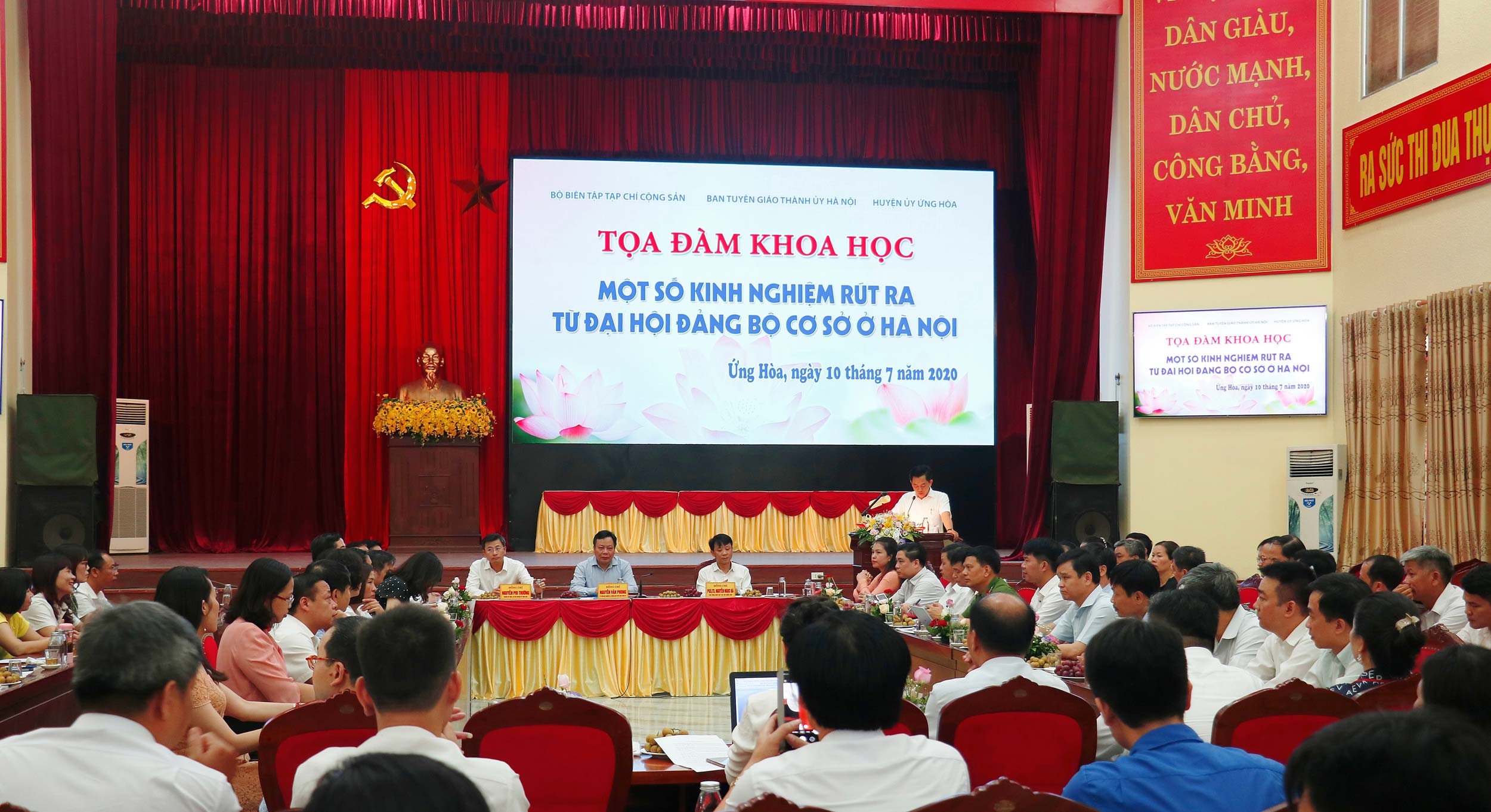 TCCS - Ngày 10-7-2020, tại Hà Nội, Tạp chí Cộng sản phối hợp với Ban Tuyên giáo Thành ủy Hà Nội, Huyện ủy Ứng Hòa tổ chức tọa đàm khoa học: “Một số kinh nghiệm rút ra từ đại hội đảng bộ cơ sở ở Hà Nội”. Những bài học kinh nghiệm quý đa dạng, phong phú sau quá trình hoàn thành việc tổ chức đại hội đảng bộ cơ sở của Hà Nội, nhất là của huyện Ứng Hòa, có giá trị tham khảo tốt đối với các đảng bộ trong toàn quốc.